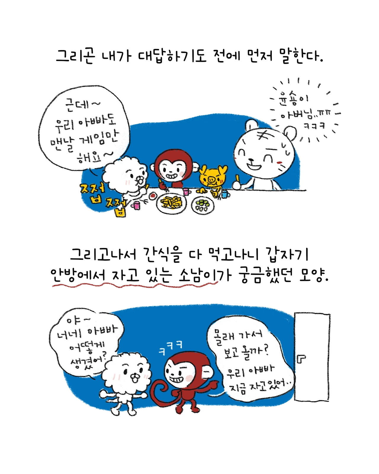 #블루챔버 #그림일기 #육아일기 #일상툰 #남매맘 #애둘맘 #71개월어린이 #41개월아기 #4살아기 #7살어린이 #소남이를보고슉슉이친구가한말 #7살친구 #어린이말 #귀여워 #니가젊음을아니