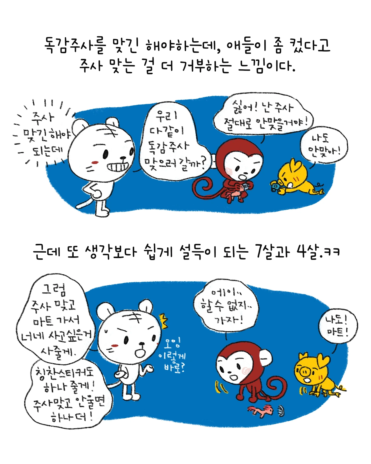 #블루챔버 #그림일기 #육아일기 #일상툰 #남매맘 #애둘맘 #72개월어린이 #42개월아기 #4살아기 #7살어린이 #독감주사맞은날