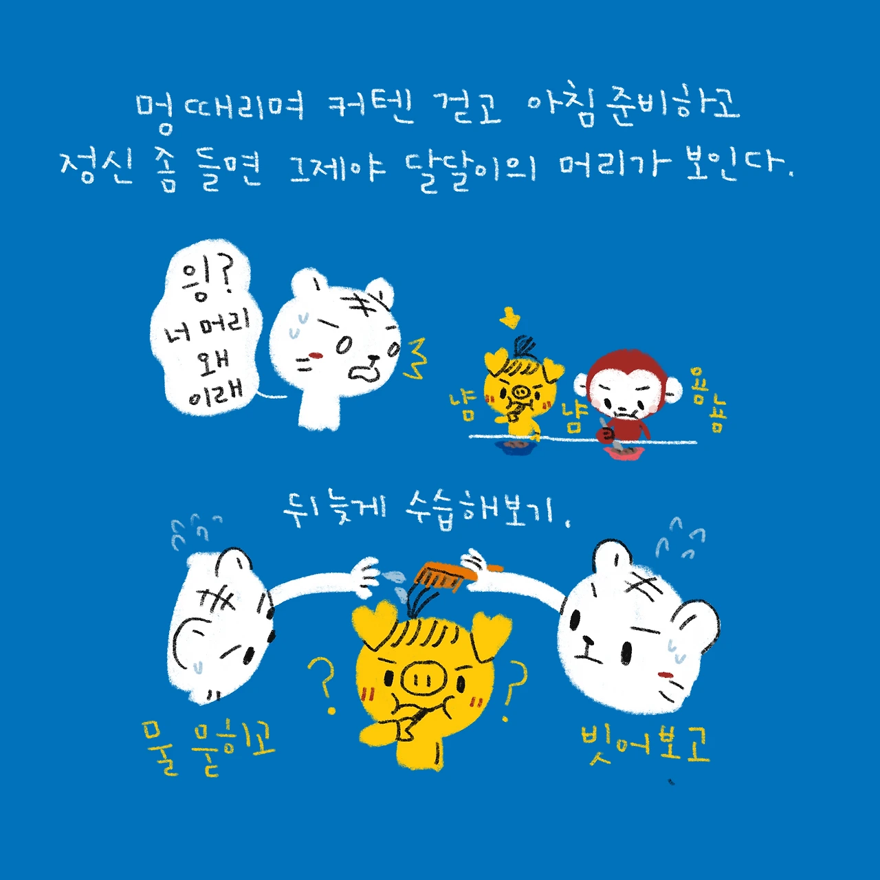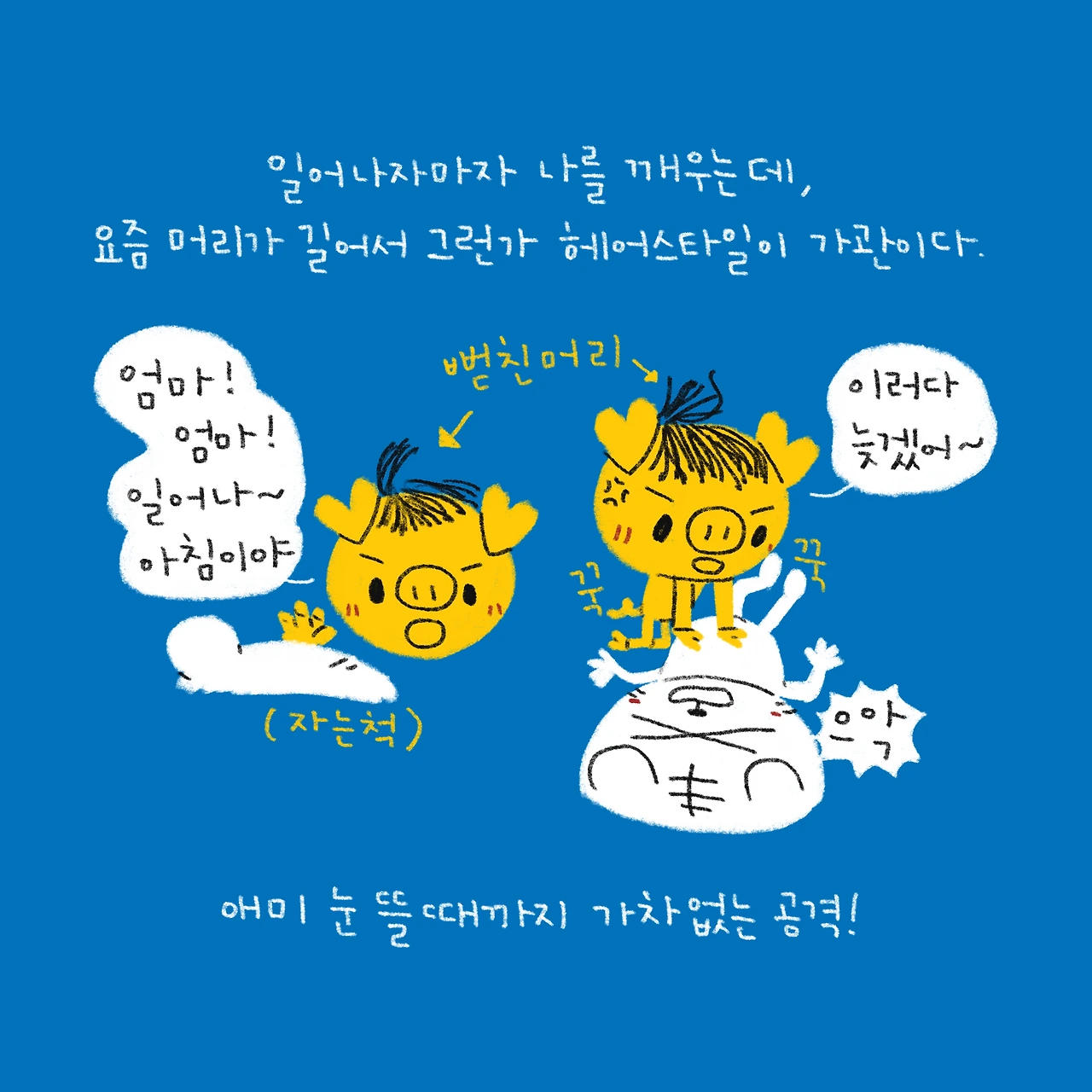 #블루챔버 #그림일기 #육아일기 #일상툰 #남매맘 #애둘맘 #73개월어린이 #43개월아기 #4살아기 #7살어린이 #달달이의뻗친머리