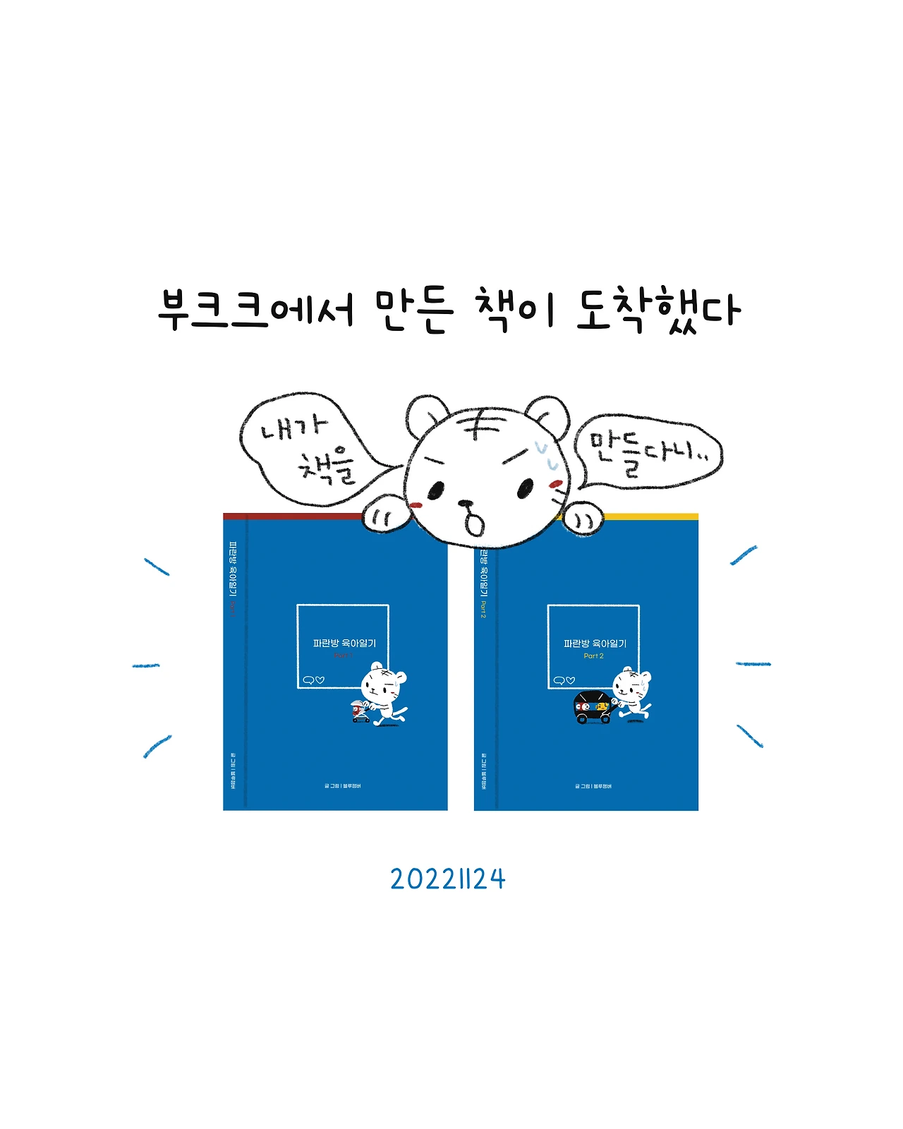 혹시 책을 구입하고 싶으신 분은 부크크 홈페이지에서 ‘파란방 육아일기’를 검색하시면 된답니다!