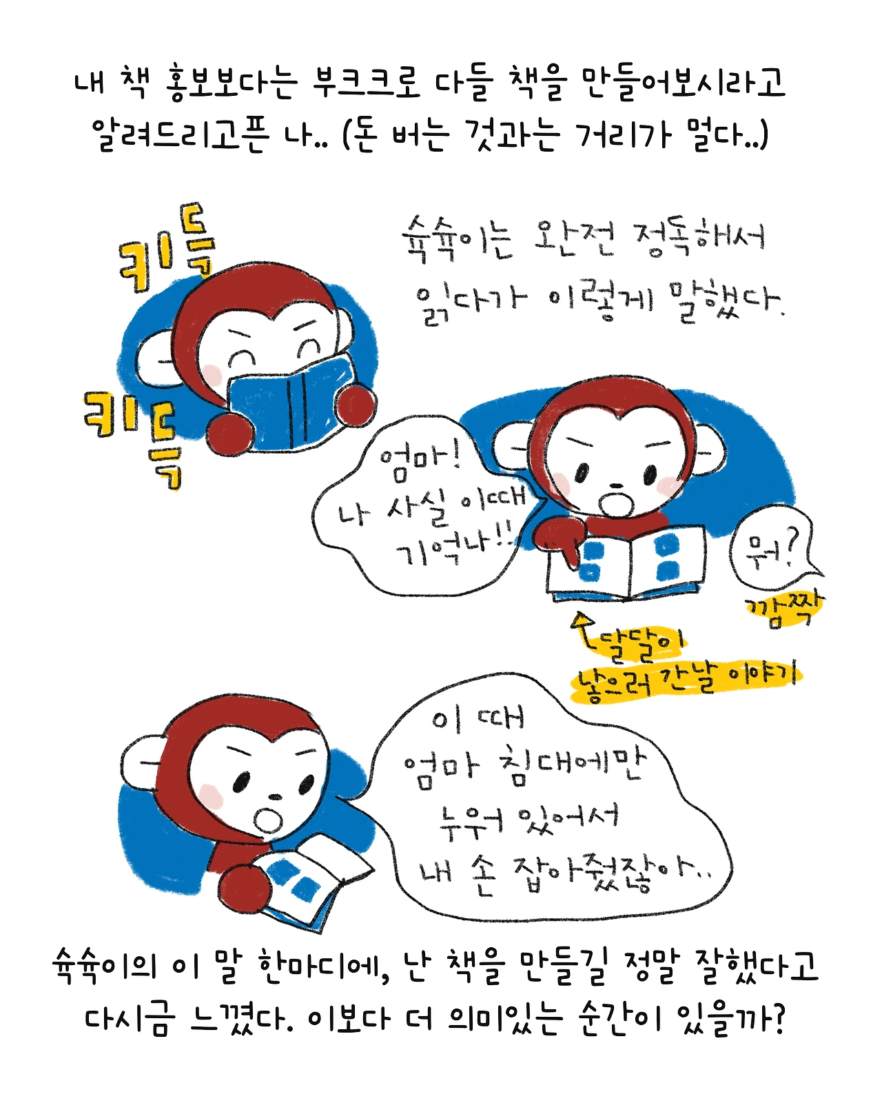 아이들이 내가 만든 본인들의 이야기를 보는 모습을 보는 순간 정말 더 이상 바랄게 없다고 느꼈다.