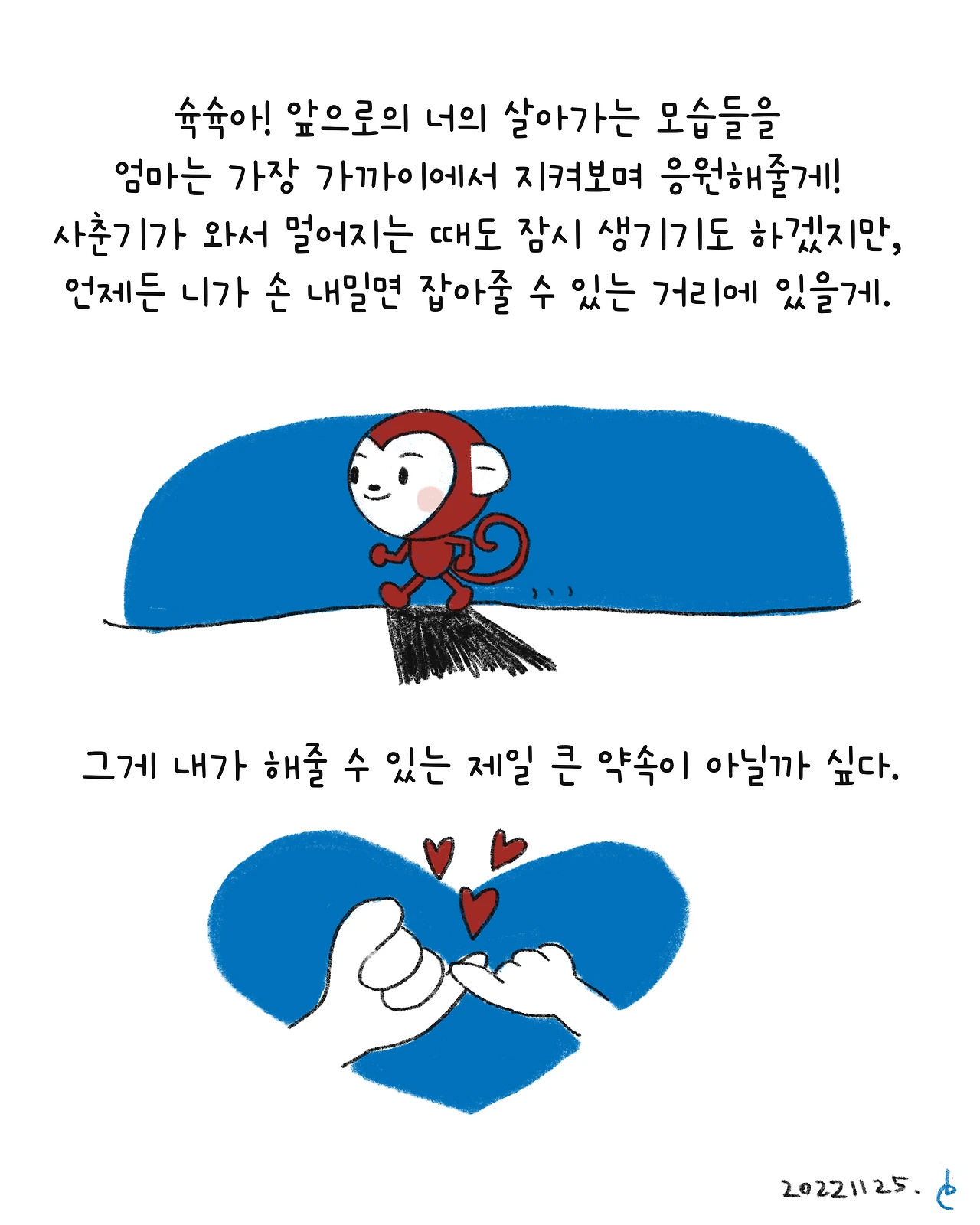 엄마로서 해줄 수 있는 건 든든한 버팀목으로 지켜봐주는 거겠지!
