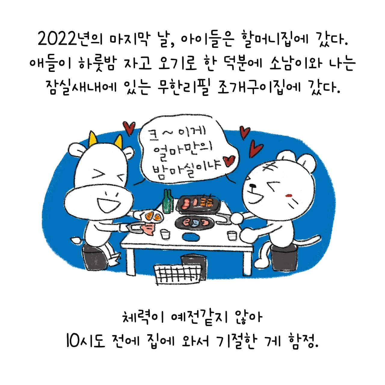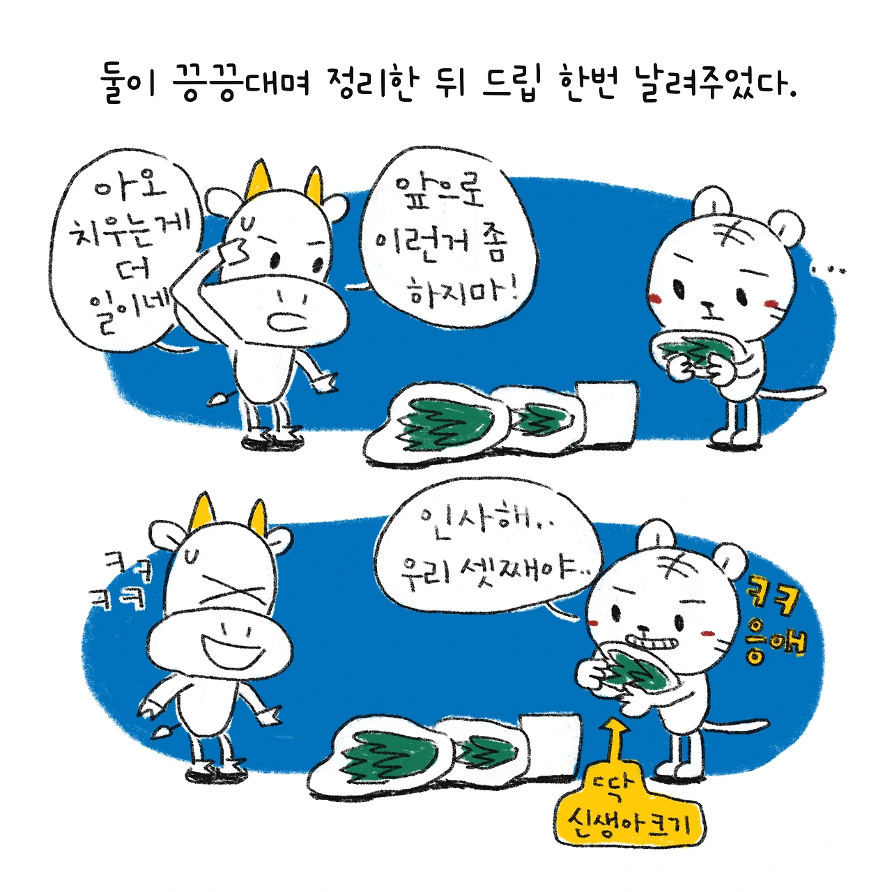 #블루챔버 #그림일기 #육아일기 #일상툰 #남매맘 #애둘맘 #파란방그림일기 #부부일상 #부부툰 #새해첫날한일