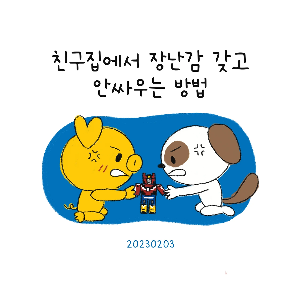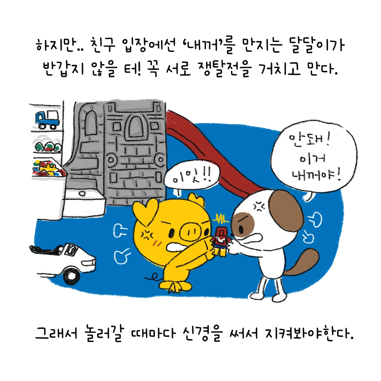 #블루챔버 #그림일기 #육아일기 #일상툰 #남매맘 #애둘맘 #파란방그림일기 #부부일상 #부부툰 #친구집에서장난감갖고안싸우는방법 #5세 #싸우지마