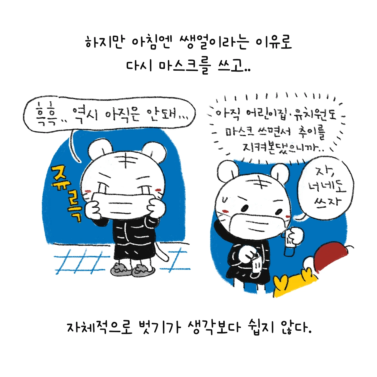 #블루챔버 #그림일기 #육아일기 #일상툰 #남매맘 #애둘맘 #파란방그림일기 #부부일상 #부부툰 #마스크벗고는싶은데 #왜못벗니