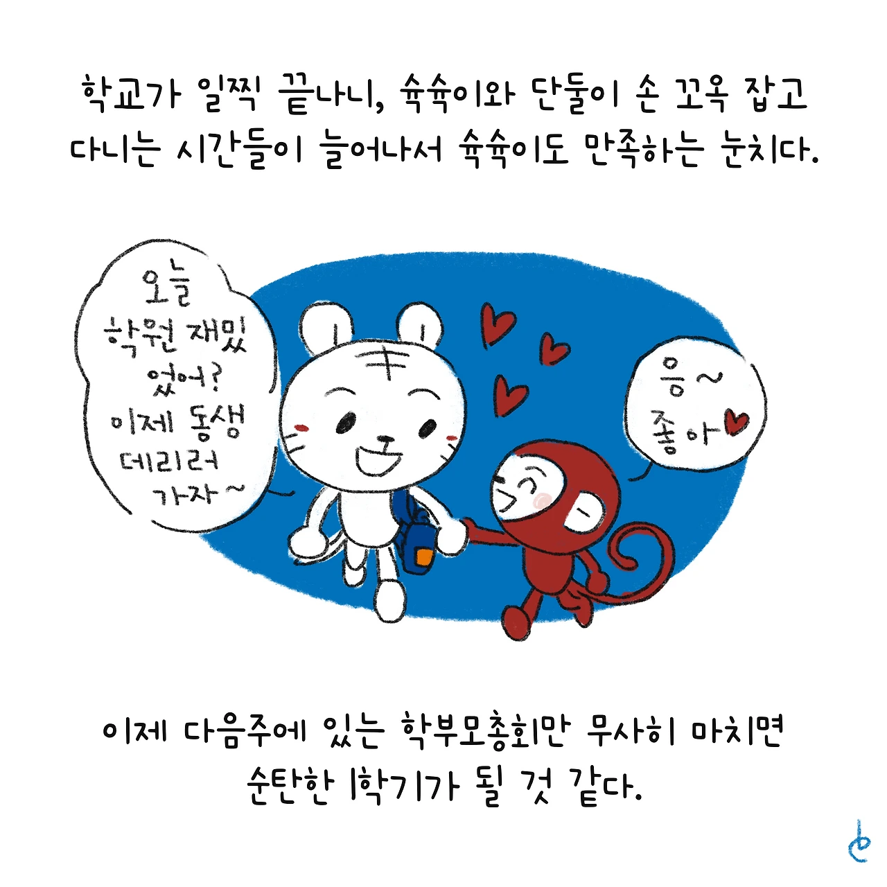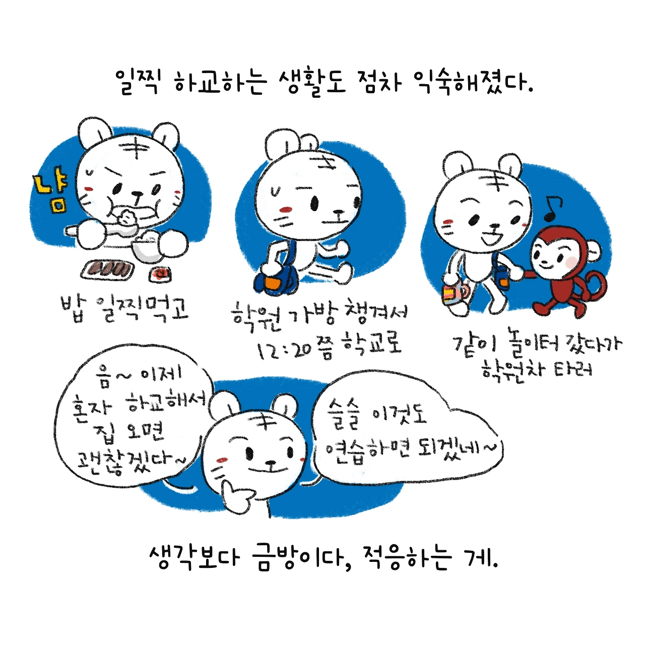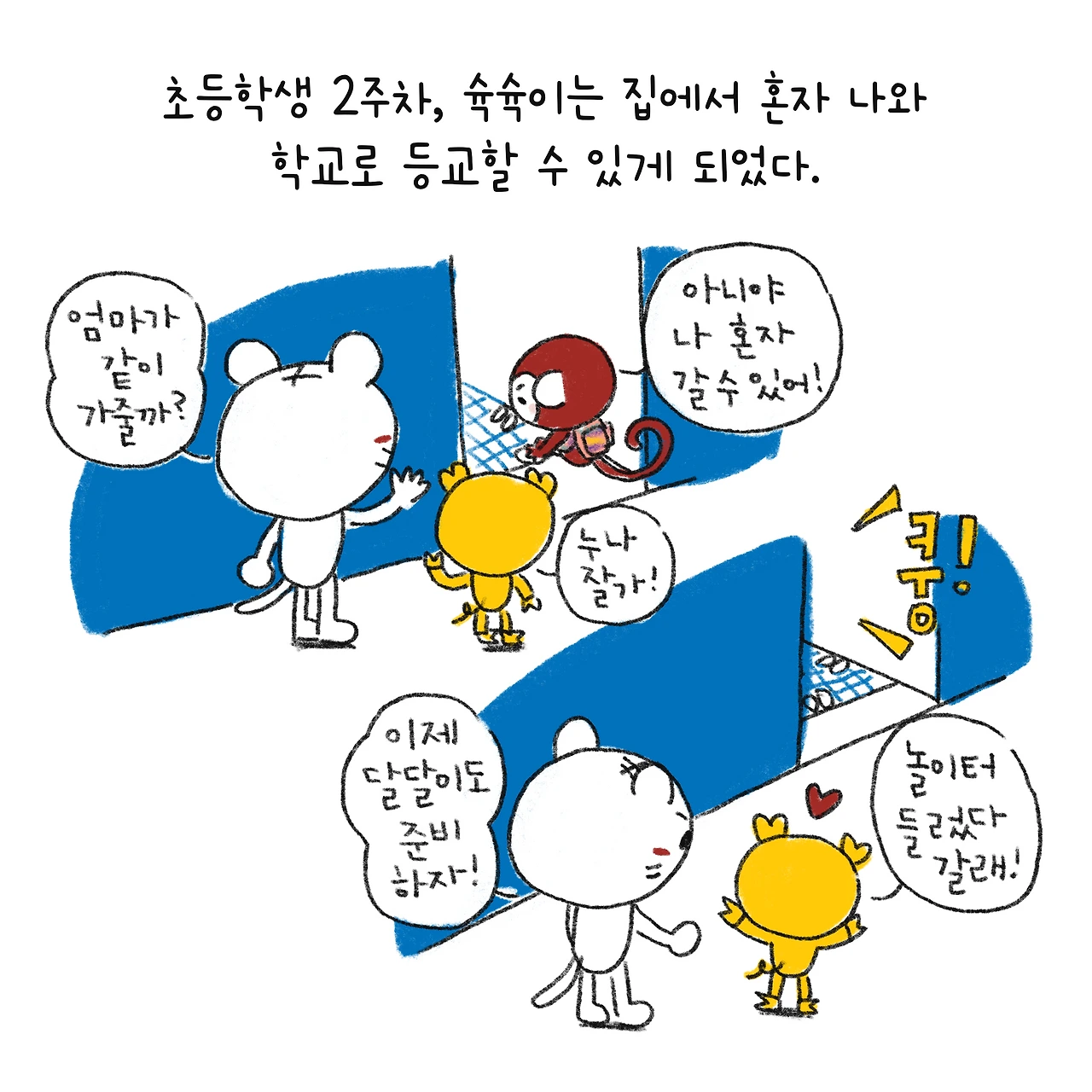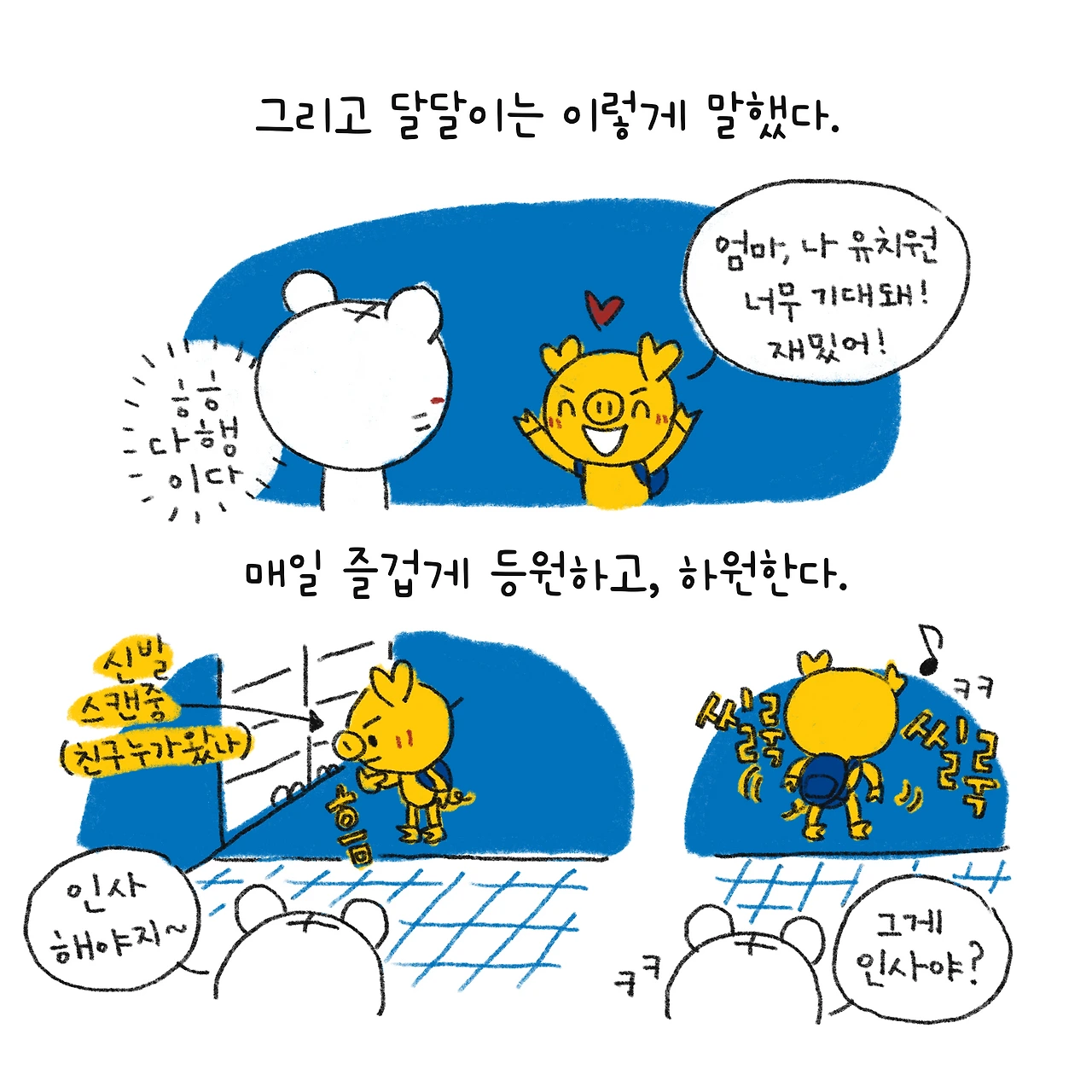 #블루챔버 #그림일기 #육아일기 #일상툰 #남매맘 #애둘맘 #파란방그림일기 #부부일상 #부부툰 #초1 #초등학교입학 #잼민이입성 #8세 #놀라운아이들의적응력 #유치원 #5세
