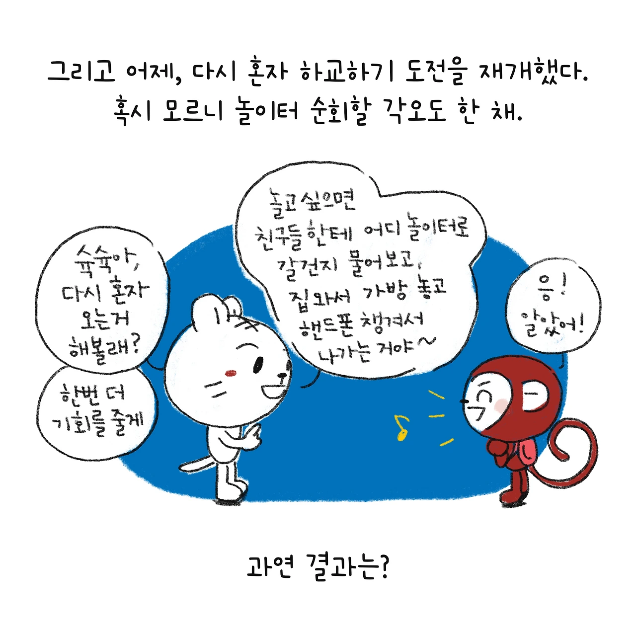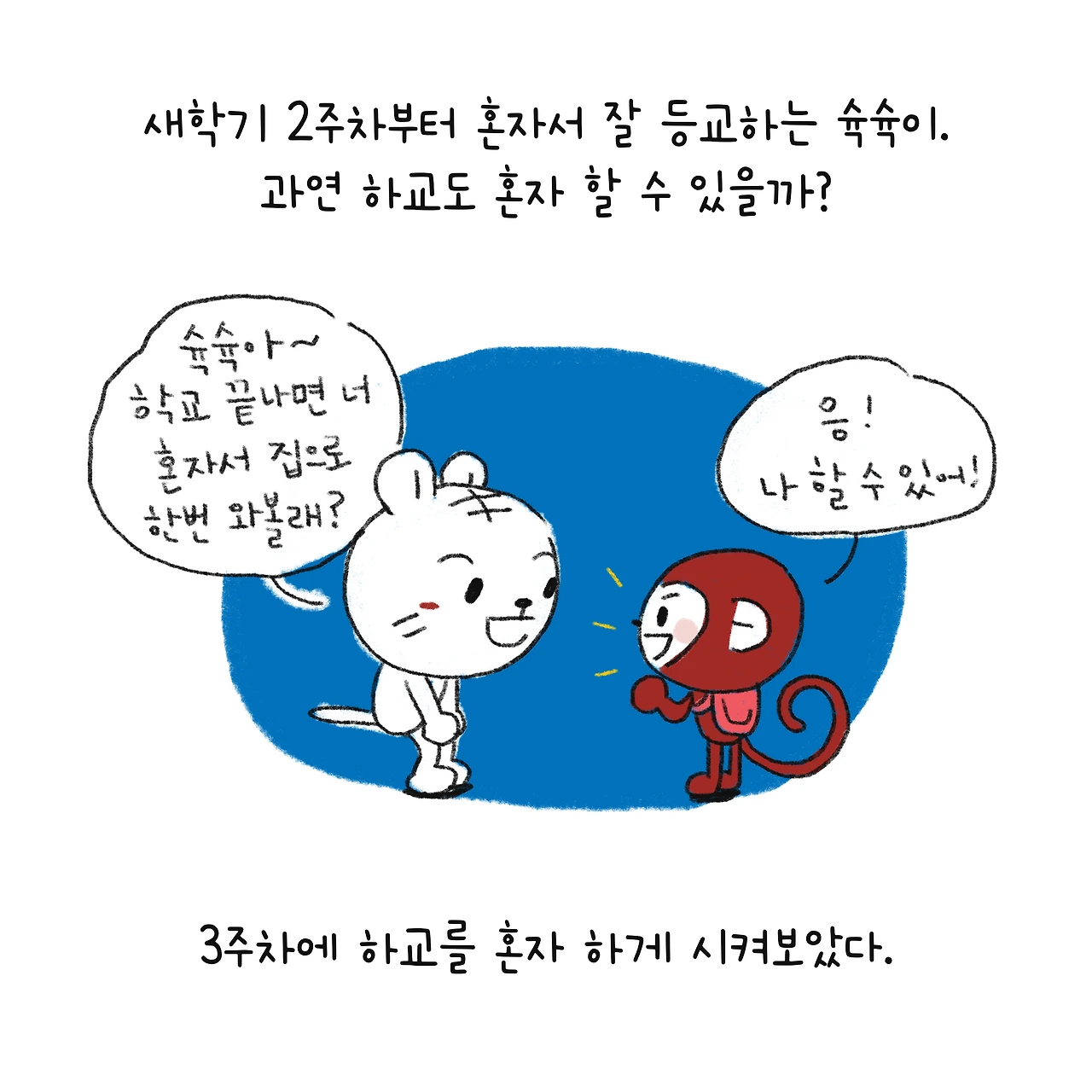 아이가 자랄수록 부모가 모르는 아이만의 세상이 커진다고 한다, 슉슉이도 혼자 등하교하면서 점점 슉슉이만의 세상이 넓어지겠지?