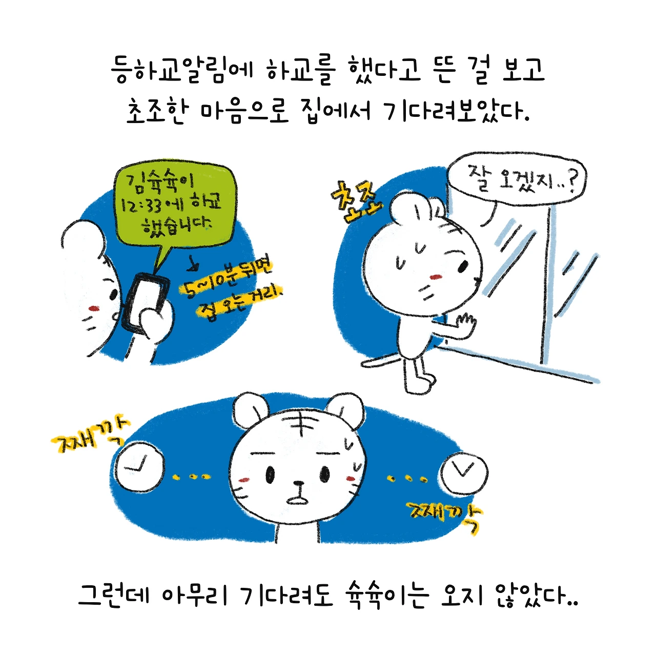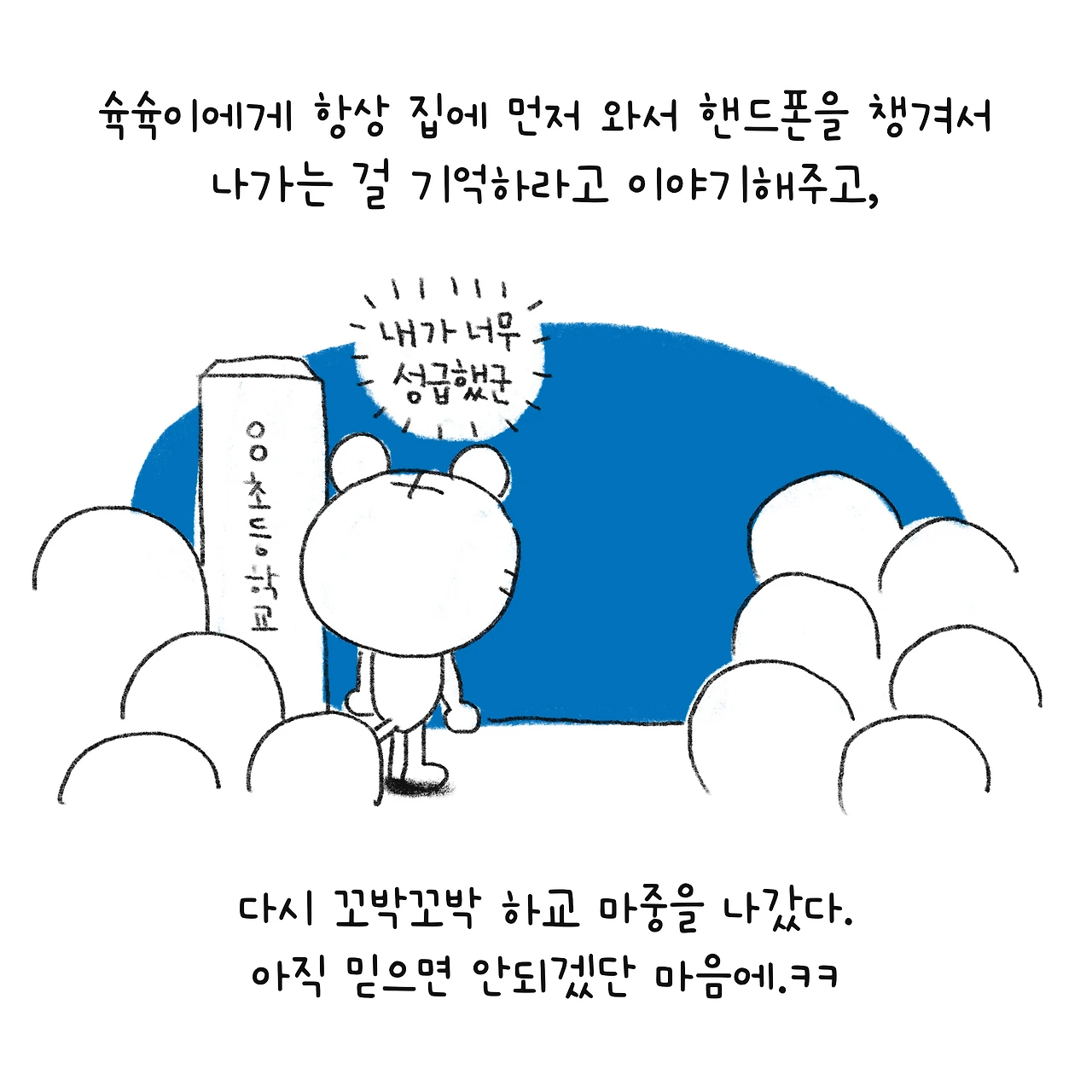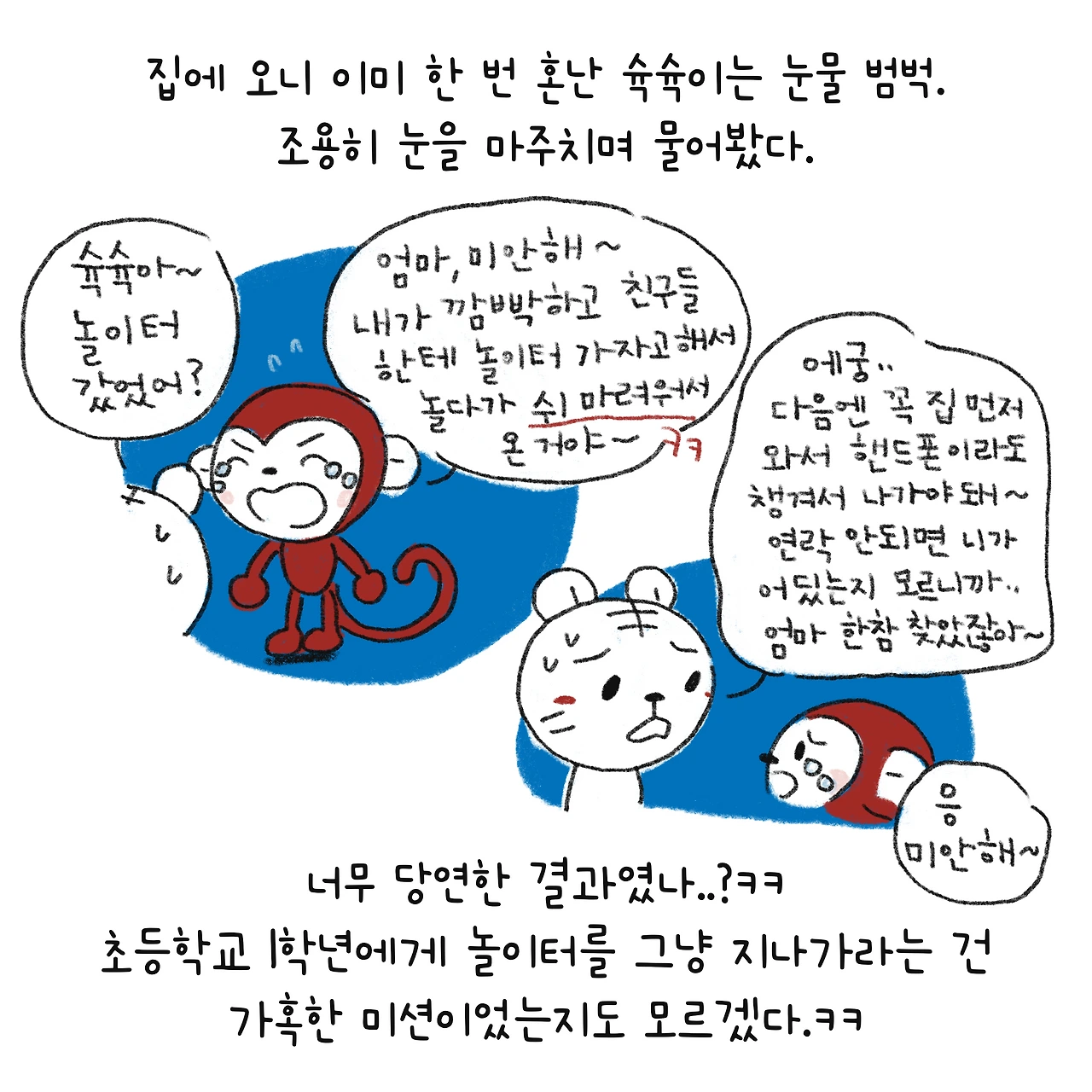 #블루챔버 #그림일기 #육아일기 #일상툰 #남매맘 #애둘맘 #파란방그림일기 #부부일상 #부부툰 #슉슉이의혼자하교하기도전 #혼자하교 #초1 #1학년