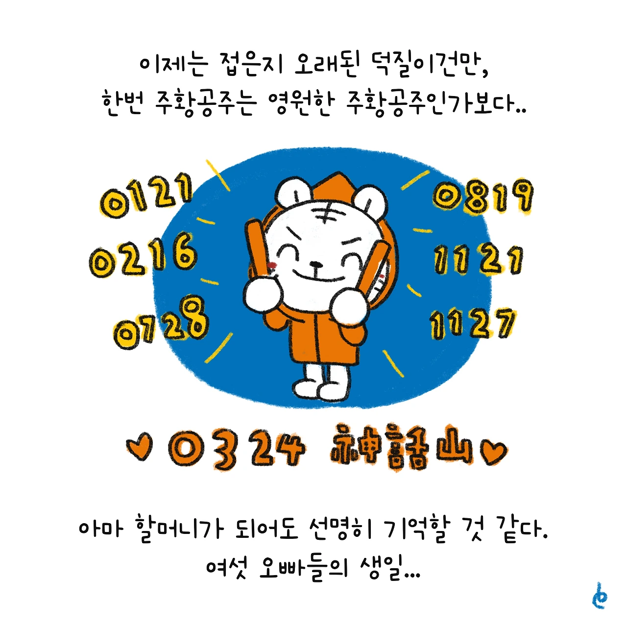 #블루챔버 #그림일기 #육아일기 #일상툰 #남매맘 #애둘맘 #파란방그림일기 #부부일상 #부부툰 #나를따라다니는어떤숫자들 #신화창조 #주황공주