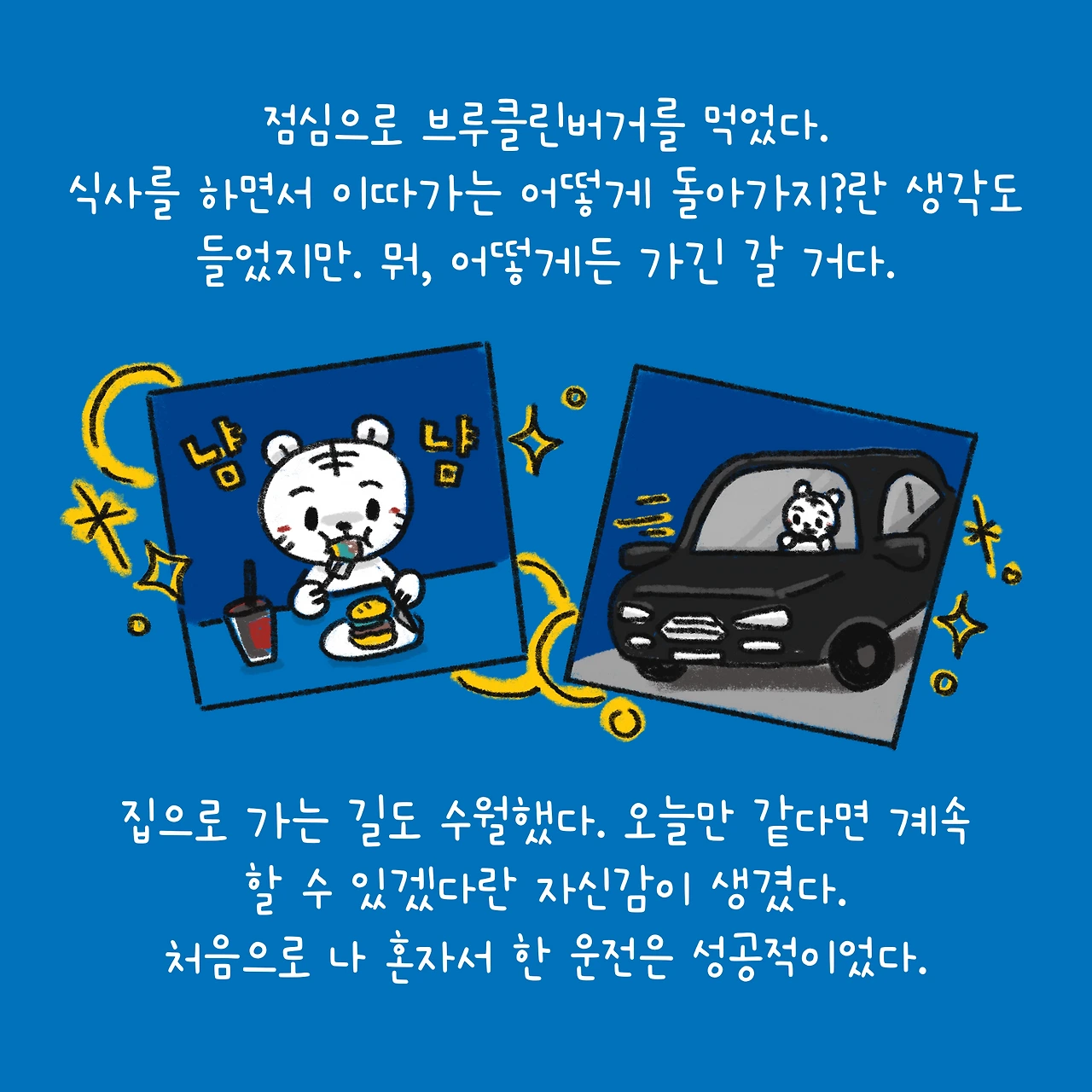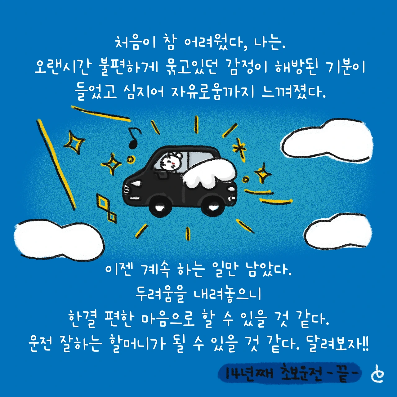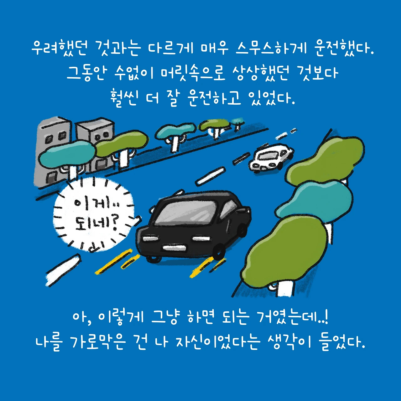 저와 같은 분들이 있다면, 용기를 내보시라고 꼭 말해주고 싶어서 요 짧은 운전툰을 그려보게 되었답니다!