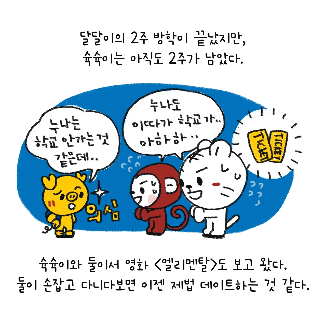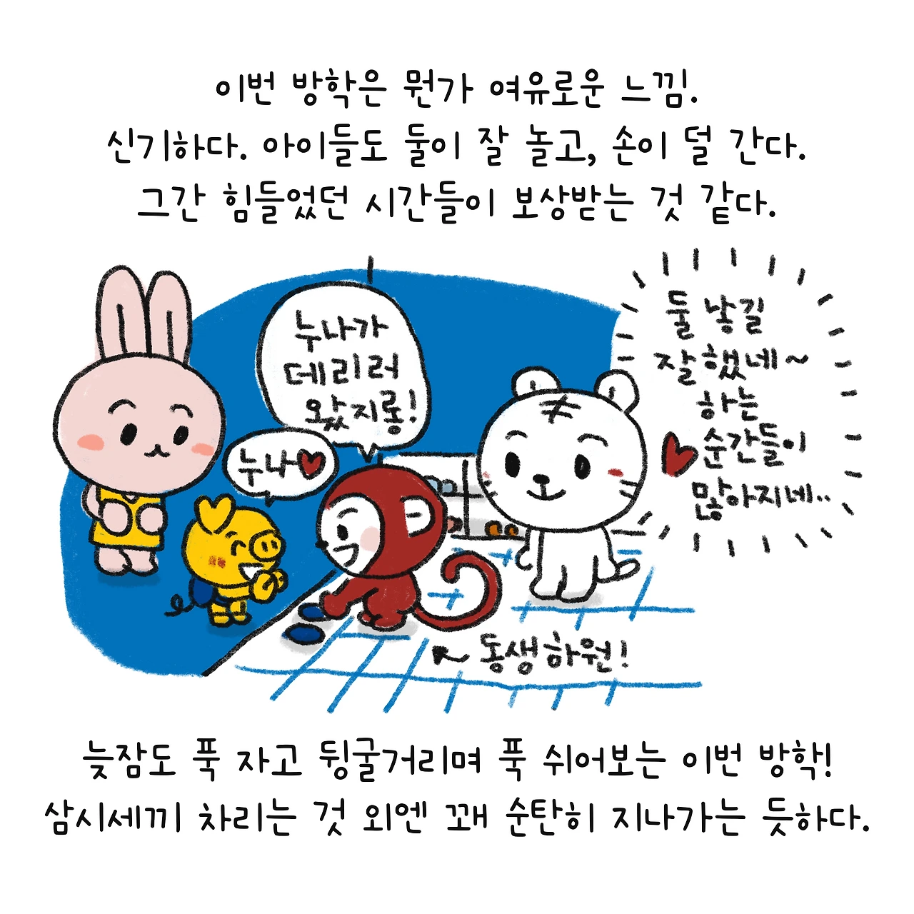 #블루챔버 #그림일기 #육아일기 #일상툰 #남매맘 #애둘맘 #파란방그림일기 #생각보다괜찮은초딩방학 #여름방학 #초딩방학