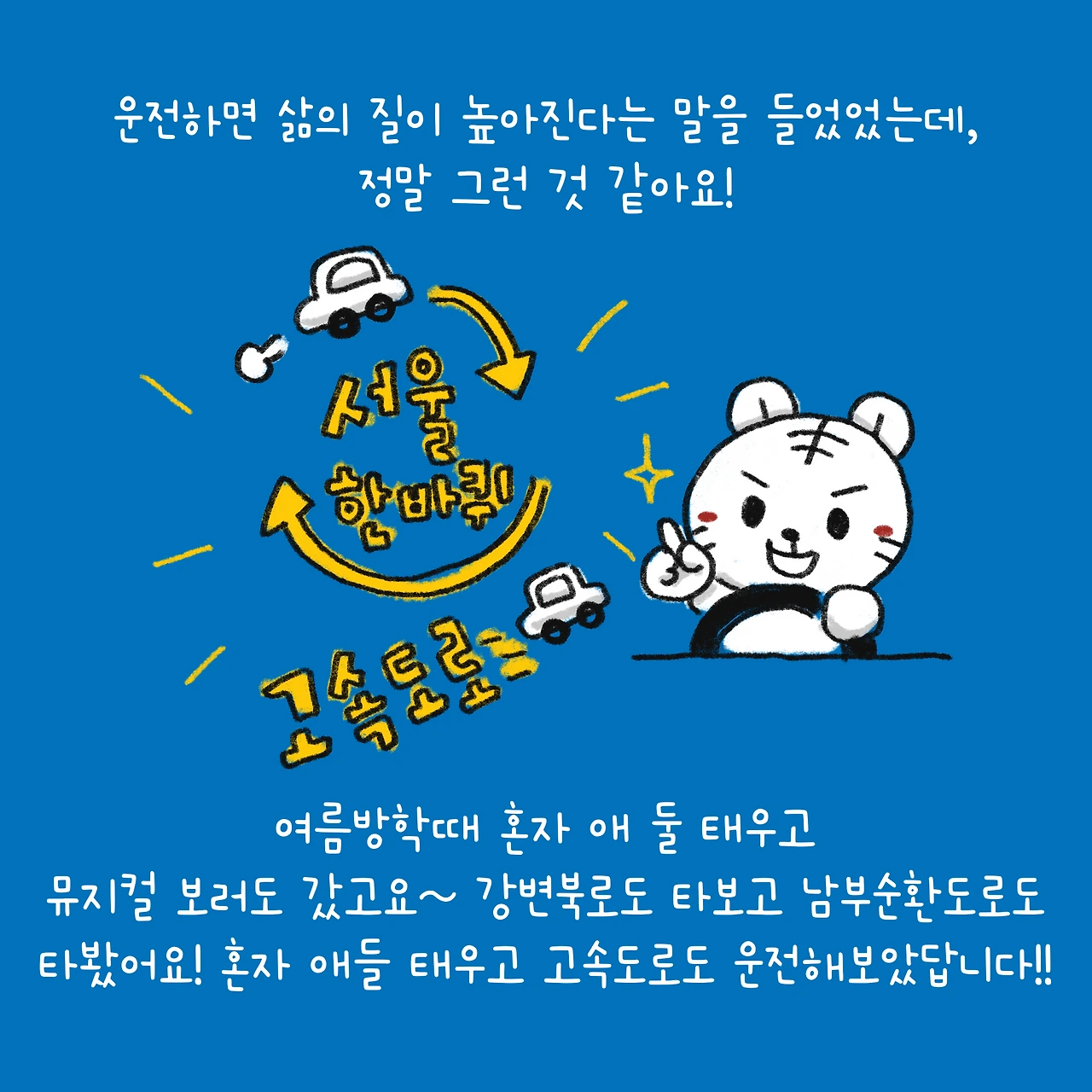 운전 늘었다고 자만할 때 사고나기 좋다고 하니, 항상 겸손히 조심조심 다닐게요..