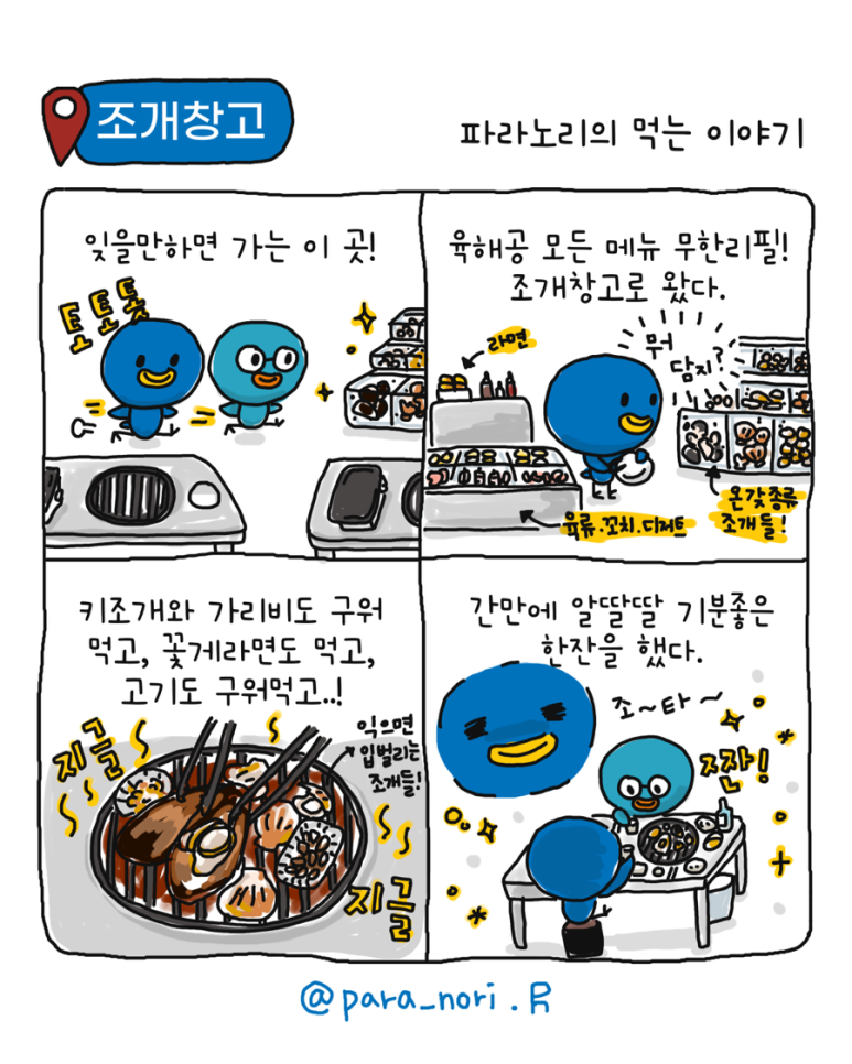 #조개창고 #가리비 #키조개 #조개 #조개구이 #맛집 #잠실새내맛집 #조개구이맛집 #무한리필 #파라노리 #먹방 #맛집 #파라노리의먹는이야기 #음식툰 #일상툰 #먹방일기