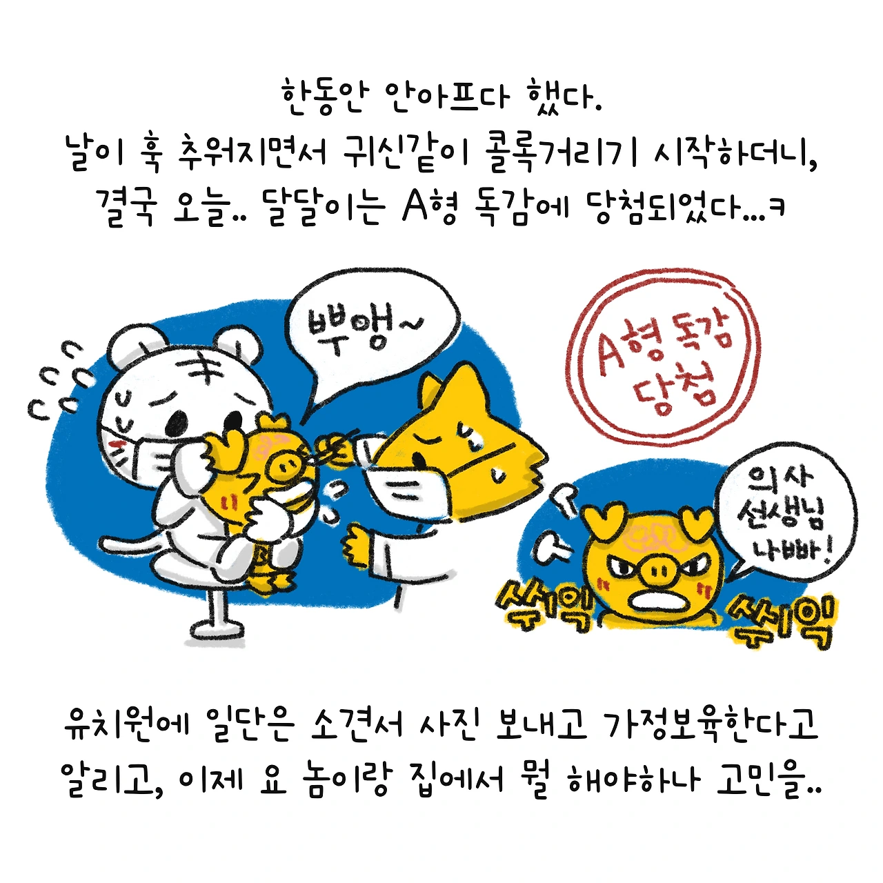 #블루챔버 #그림일기 #육아일기 #일상툰 #남매맘 #애둘맘 #한동안안아프다했다 #독감 #a형독감 #만4세