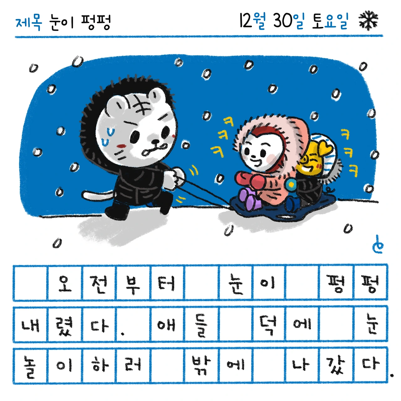 #파란방그림일기 #블루챔버 #그림일기 #일상 #하루한컷 #눈이펑펑 #함박눈 #눈놀이