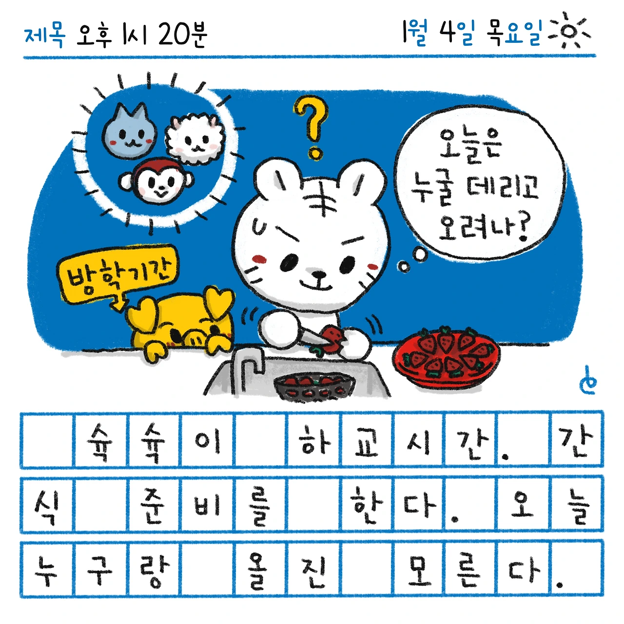 #파란방그림일기 #블루챔버 #그림일기 #일상 #하루한컷 #오후1시20분 #5교시 #하교넘빨라 #곧방학