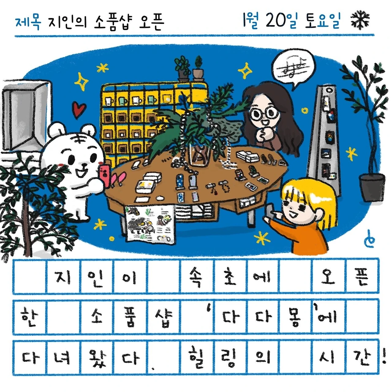 #파란방그림일기 #블루챔버 #그림일기 #일상 #하루한컷 #지인의소품샵오픈 #다다몽 #속초소품샵 #당일치기 #속초여행