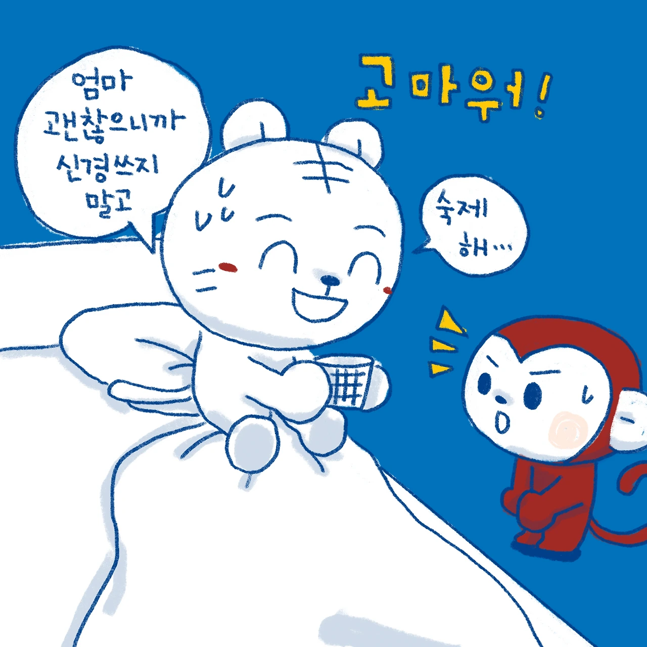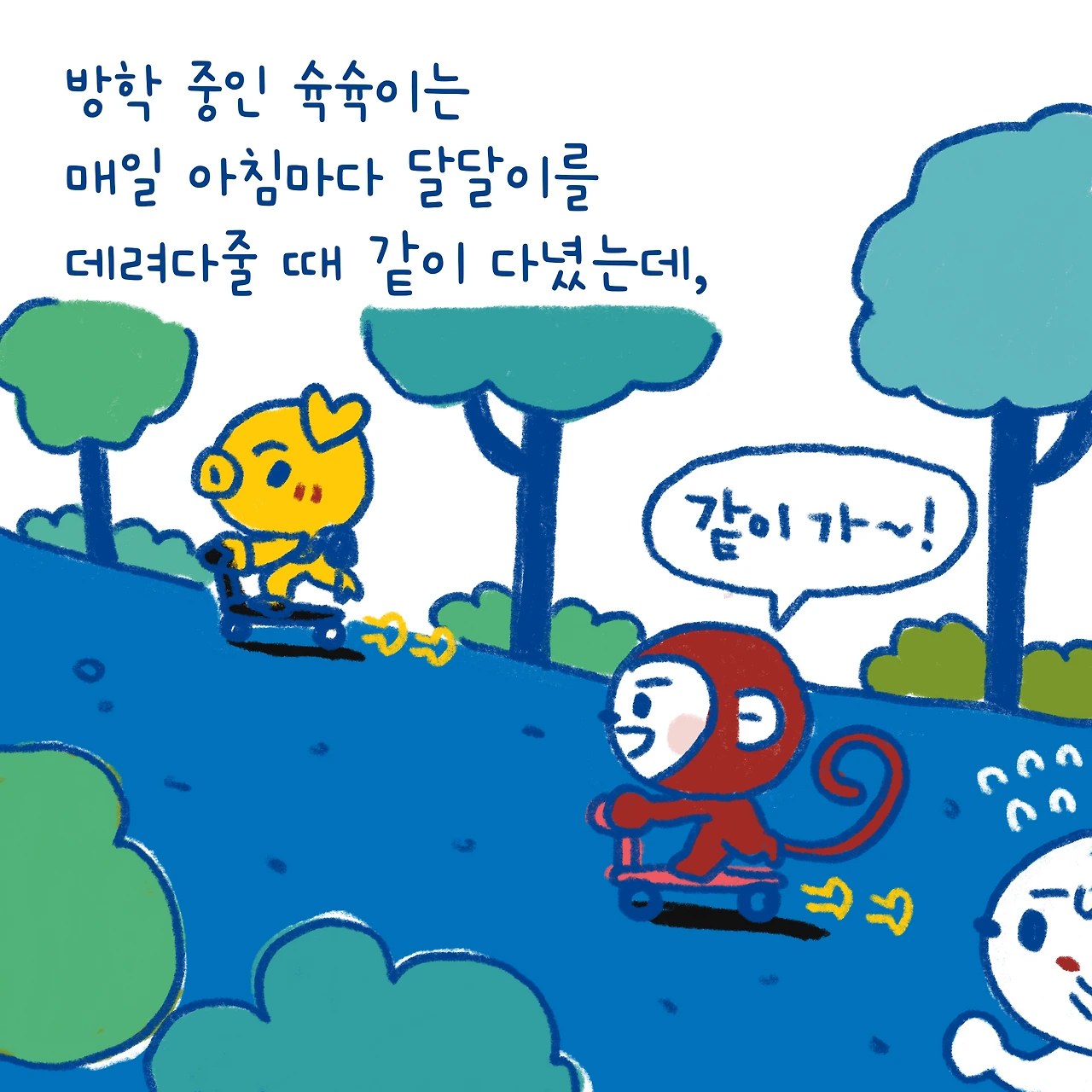 소띠 아빠, 호랑이띠 엄마, 원숭이띠 딸, 돼지띠 아들. 소소한 육아와 일상 이야기를 그리고 있습니다.