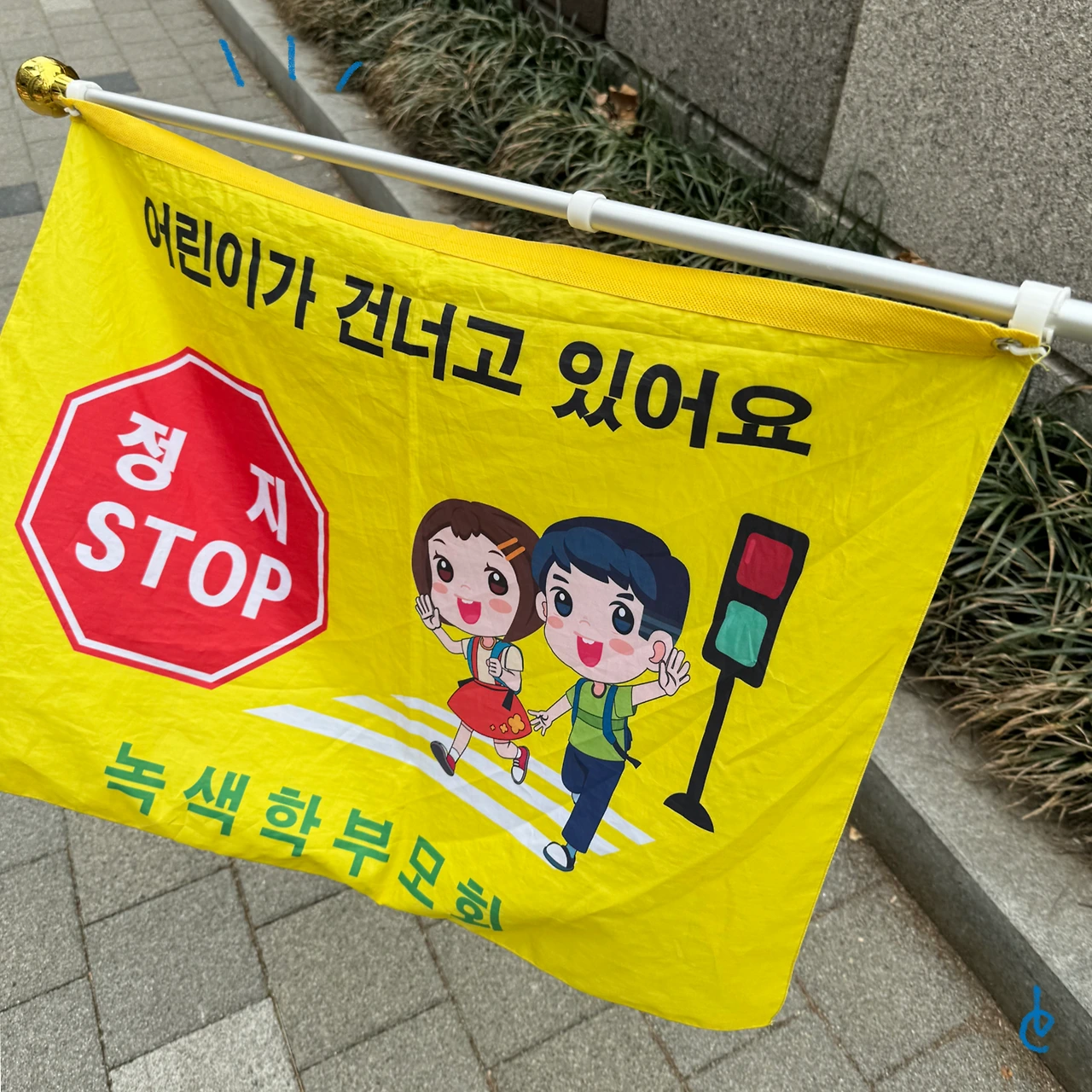 처음이라 어버버버.. 조끼입고 깃발 챙겨서 지정받은 구역에 서서 40여분간 활동했다. 처음이다보니 뭔가 신기하고 재밌었다. 등교하는 애들마다 표정도 다 달라서 관찰하는 재미가 있었다.
