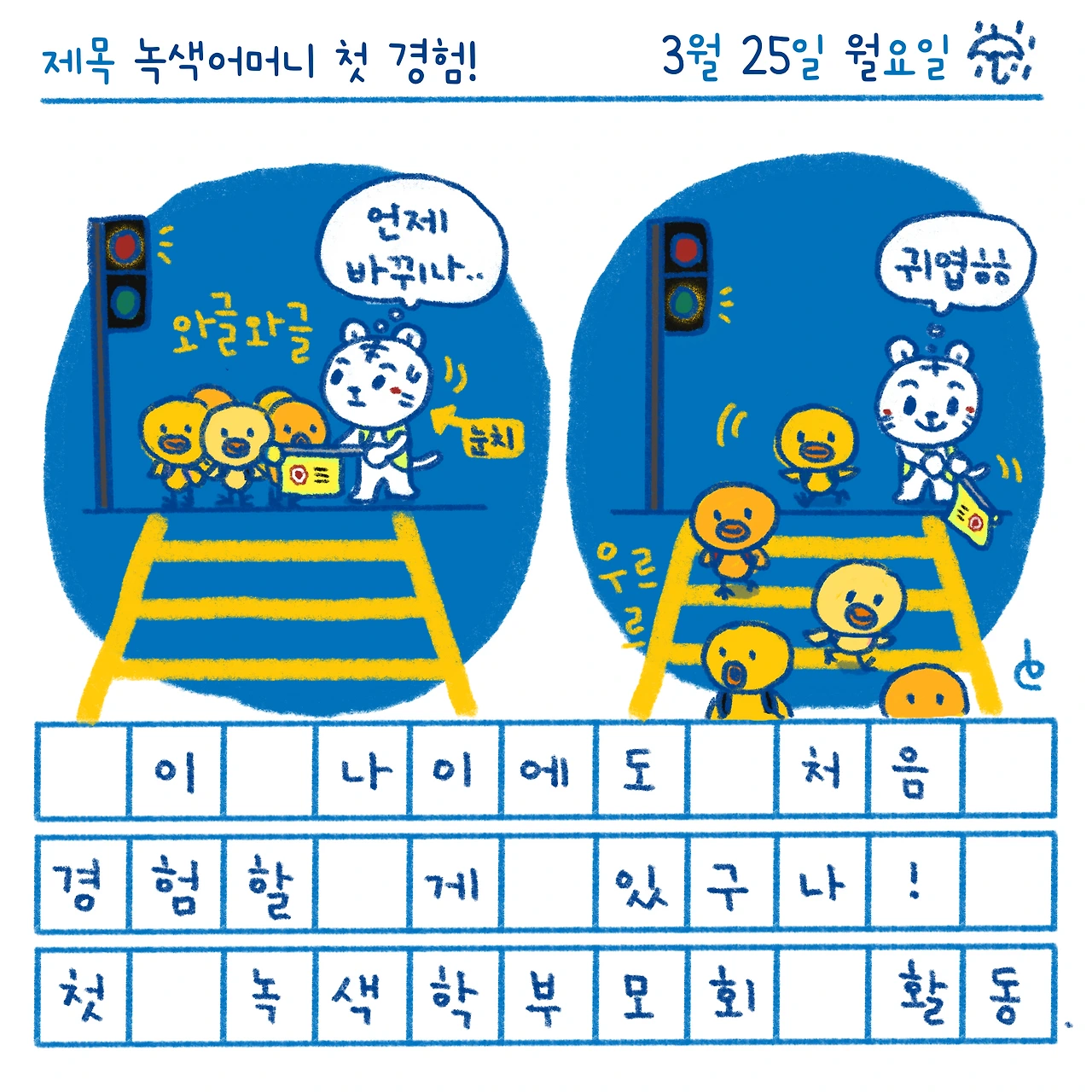 #블루챔버 #그림일기 #일상 #블루챔버의오늘기록 #오늘기록 #하루한컷 #한컷일기 #녹색어머니첫경험 #녹색학부모회 #교통지도봉사