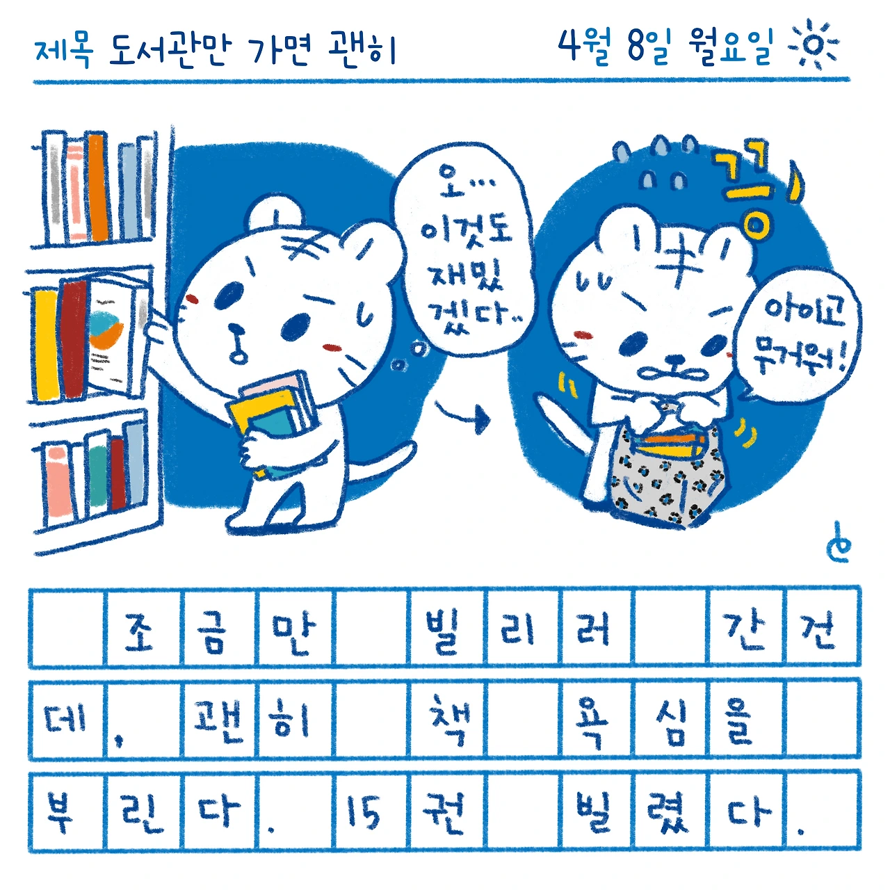#블루챔버 #그림일기 #일상 #블루챔버의오늘기록 #오늘기록 #하루한컷 #도서관만가면괜히 #도서관 #책빌리기 #책욕심