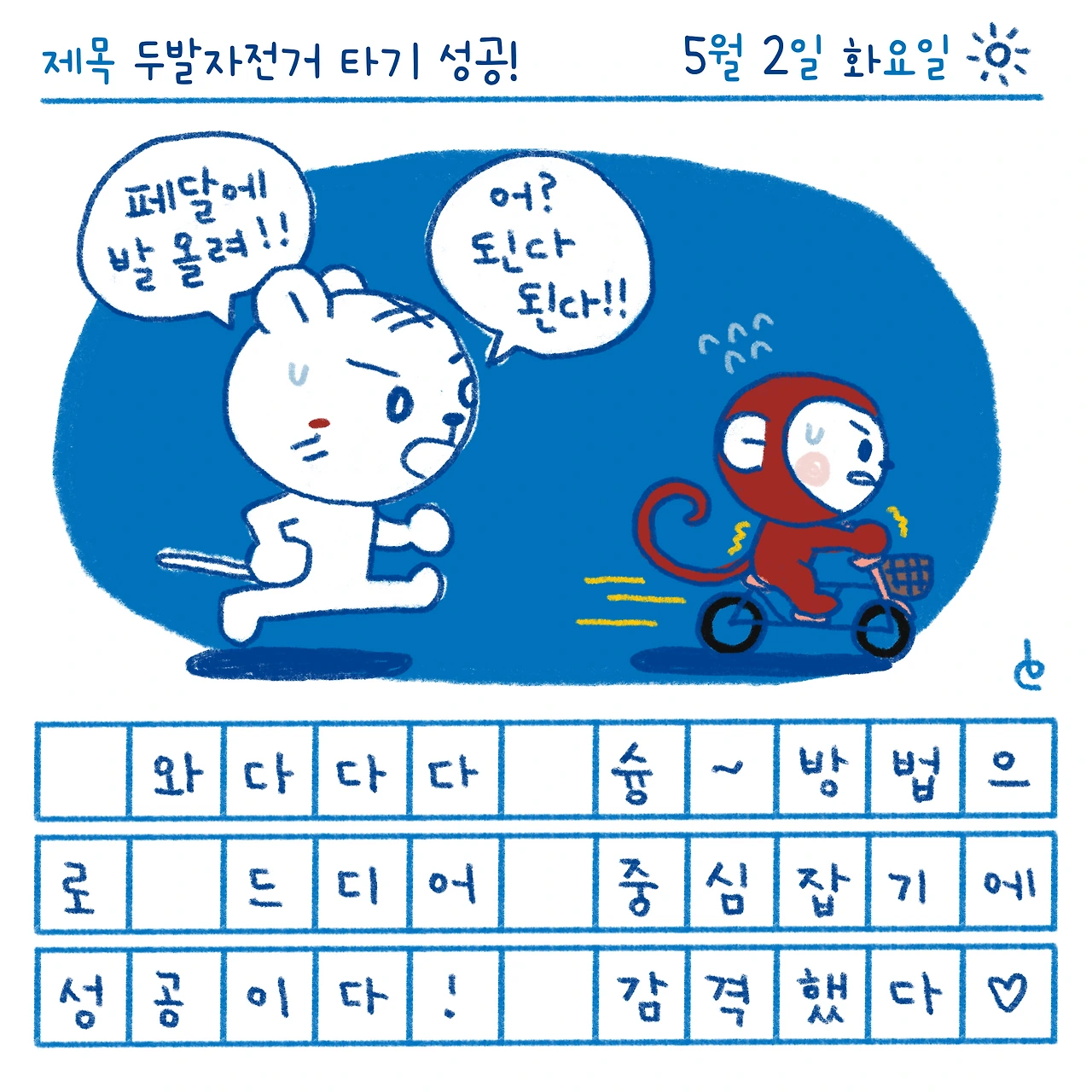 #블루챔버 #그림일기 #일상 #블루챔버의오늘기록 #오늘기록 #하루한컷 #두발자전거타기성공