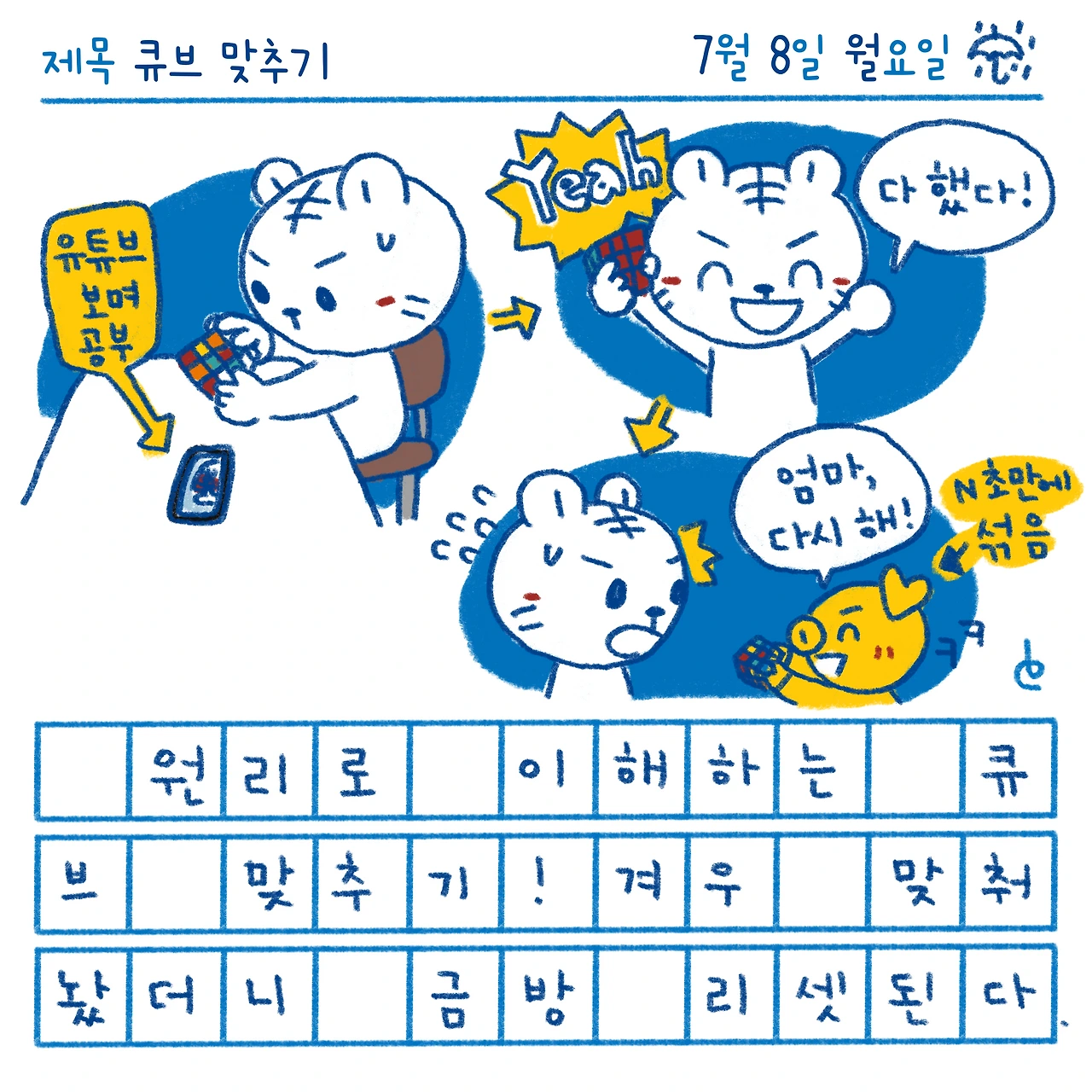 #블루챔버 #그림일기 #일상 #블루챔버의오늘기록 #오늘기록 #하루한컷 #큐브맞추기