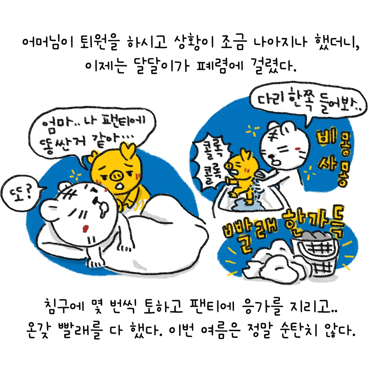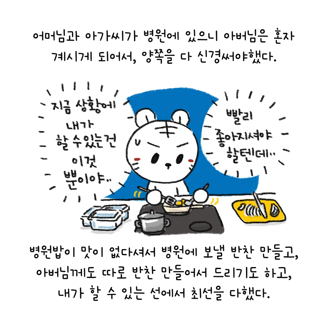 굳이 소재로 그리고 싶지도 않고 부정탈까봐 조용히 있다가, 이제야 좀 많이 나아지셔서 조금은 편한 마음으로 그림일기를 그리게 되었다.