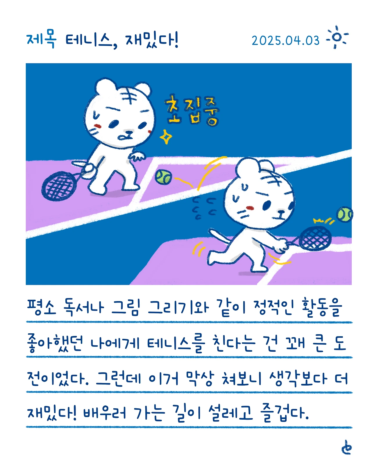 #블루챔버 #그림일기 #일상 #하루한컷 #테니스재밌다