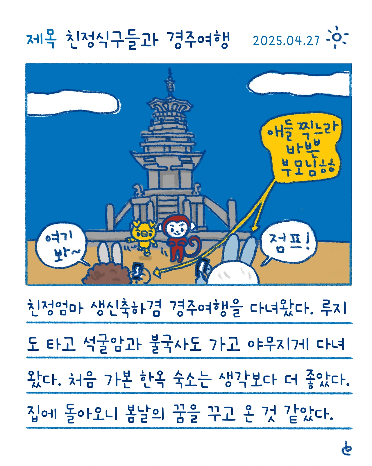 #블루챔버 #그림일기 #일상 #하루한컷 #친정식구들과경주여행 #경주여행 #경주