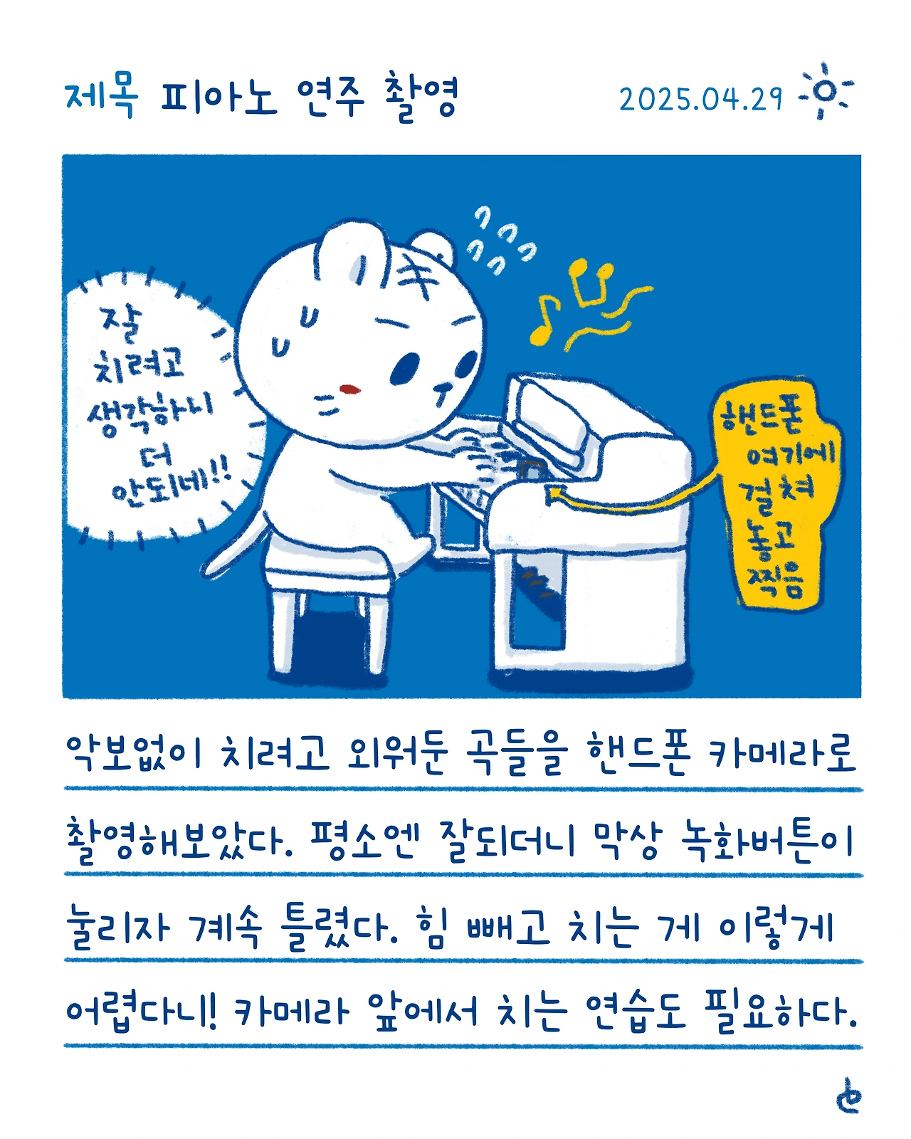 #블루챔버 #그림일기 #일상 #하루한컷 #피아노연주촬영 #악보외우기 #취미