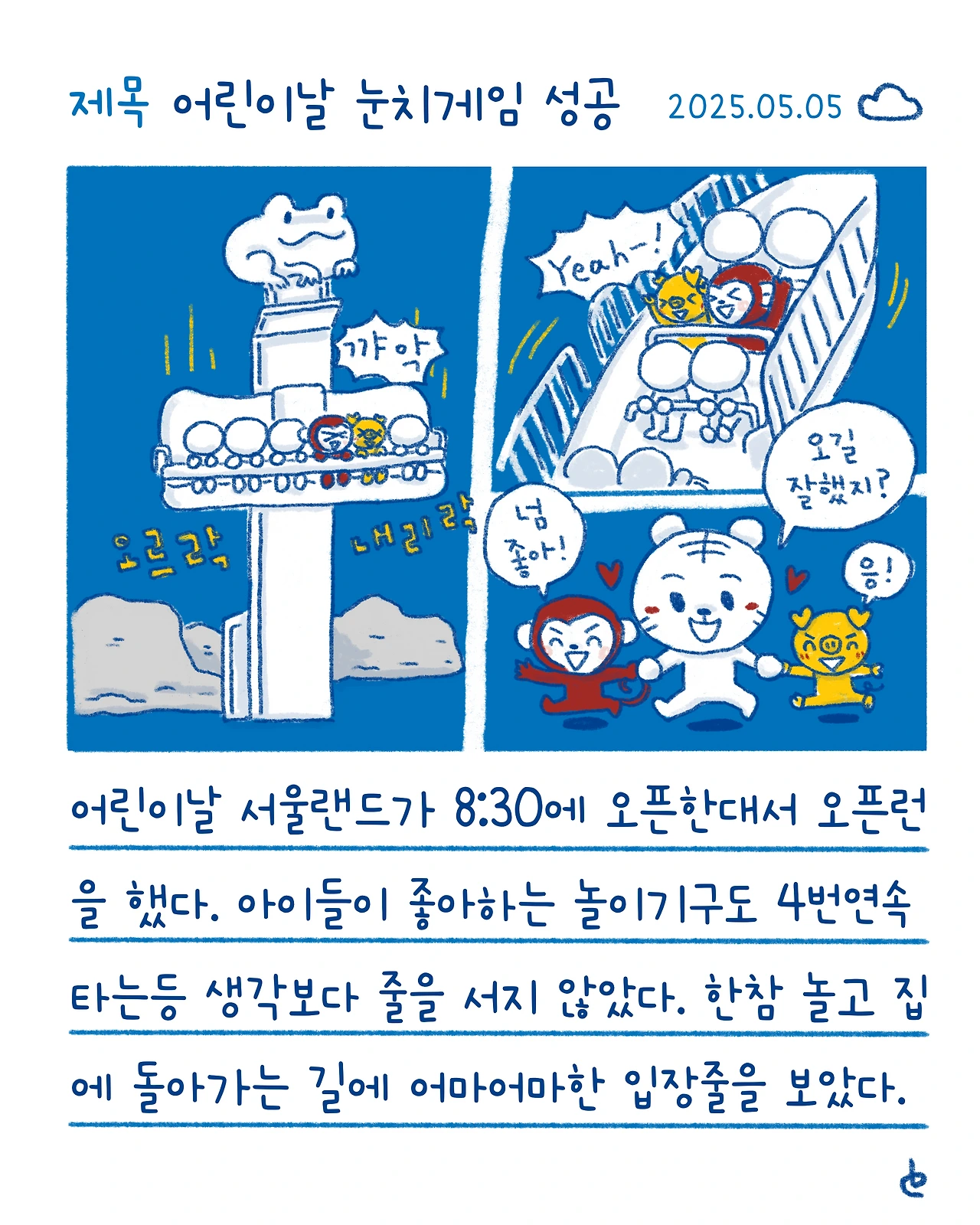 #블루챔버 #그림일기 #일상 #하루한컷 #어린이날눈치게임성공 #어린이날 #서울랜드