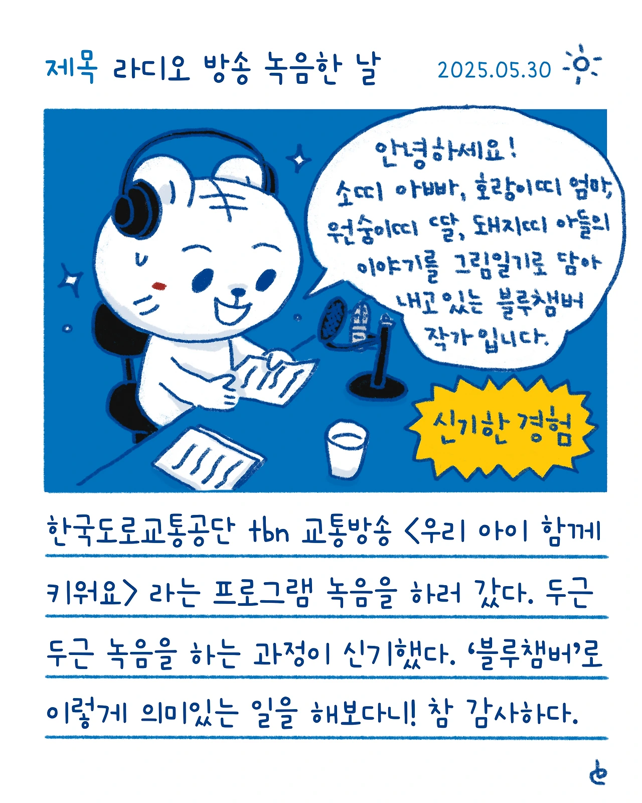 #블루챔버 #그림일기 #일상 #하루한컷 #라디오방송녹음한날 #tbn교통방송 #우리아이함께키워요 #신기한경험