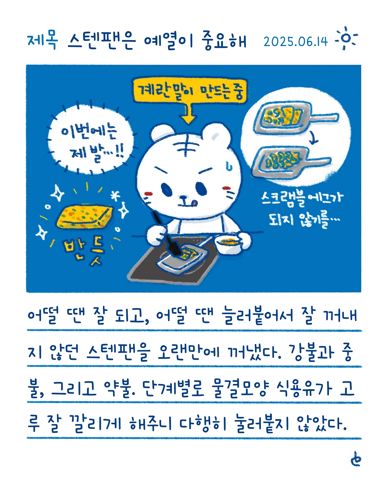 #블루챔버 #그림일기 #일상 #하루한컷 #스텐팬은예열이중요해 #스텐팬 #계란말이