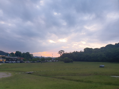 주차장이 있는 입구에 도착하자 하늘이 석양에 예쁘게 물들어 있었다.