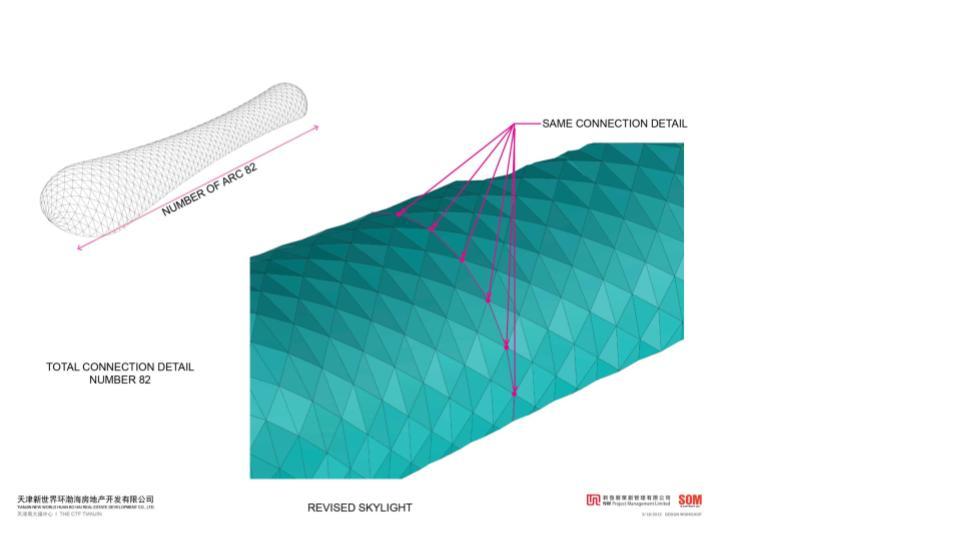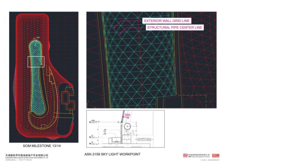 중국 텐진에 530m 높이의 타워 디자인. 초고층 건축설계 이야기에서 타워에 대해 말했고 이 부분은 포디엄 리테일 몰에 있는 천창의 디자인이었다. 2011년에 디자인을 시작해서 완공은 2019년에 되었다.