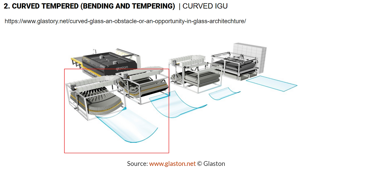 건축에서 쓰이는 유리는 성능을 높이기 위해 IGU(복층유리)를 사용하는데 두장의 유리에서 안쪽면과 바깥쪽면의 곡률이 달아서 각각의 몰드를 만들어야 하는 문제도 생기고 글라스의 표면에 코팅을 하는 기술도 곡면에서 하는 방식은 개발이 되지 않았었다.