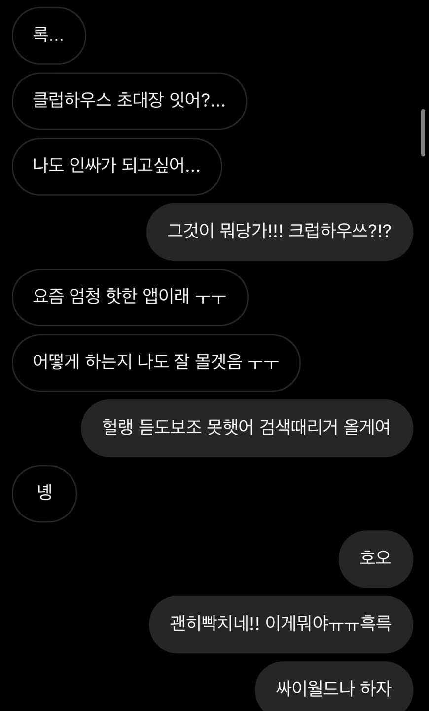 이런 와중에 클럽하우스라는 걸 접했다. 시작부터 재수없었다. 이름도 되게 권위적이잖아. 뭔가 vip only의 느낌도 들고. 나 같은 찐따들이 주눅들기 딱 좋은 네이밍이었다. 게다가 뭔데 가입도 맘대로 못하는 거지. <부부의 세계>에서는 김희애도 전 남편이 여는 파티도 초대장 받아서 가던데 클럽하우스의 세계에서 그녀도 받았겠지(의사인데다가 고산시 인플루언서쯤 되니까 당연히 받았을 것 같다). 그렇게 나는 원썬이 됐다. “찐따들은 안 된다?” 그런 와중에 it회사를 다니는 친구가 나를 초대해줬고 그렇게 클럽하우스에 입성했다.