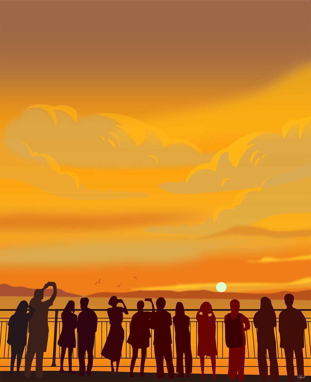 저녁노을을 마주 선 사람들의 검붉은 실루엣도 아름다웠다. 노을만큼이나 낯선 이들의 뒷모습도 한참을 바라보았다. 가족이나 연인, 친구 단위로 짝을 이루고 있거나 가볍게 산책을 나온 듯 홀로 서서 사진을 찍는 이들도 꽤 있었다. 그중에 아는 사람은 단 한 명도 없었지만 그들의 뒷모습을 바라보는 것만으로도 왠지 모를 위안이 되었다.