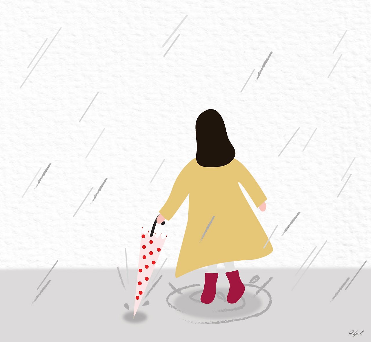 그렇게 비를 맞으며 천천히, '자유'를 들고 걸어가는 아이를 나 또한 그냥 지나쳐주었다. 길 위에서 우산을 펴고 접을 선택권은 홀로 걷던 아이에게 있으므로. 그러다 감기 걸린다, 비가 깨끗하지 않다 등의 걱정 섞인 잔소리는 앞으로 자라면서도 수 없이 들을 것이므로.