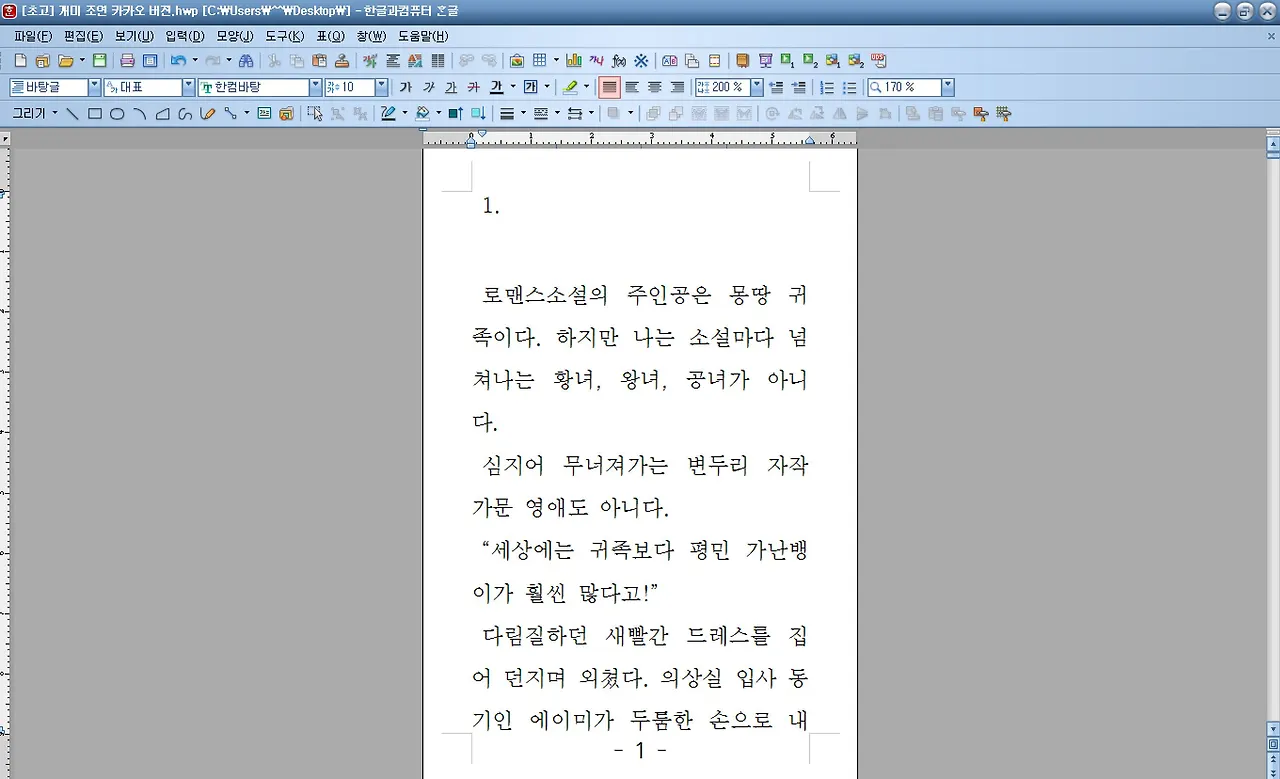 플랫폼 조판 양식을 내려받아서 쓰는 것도 좋다. 많은 작가가 그렇게 한다. 나는 한글 프로그램을 쓰지만, 카카오페이지 조판 양식으로 작업한다.