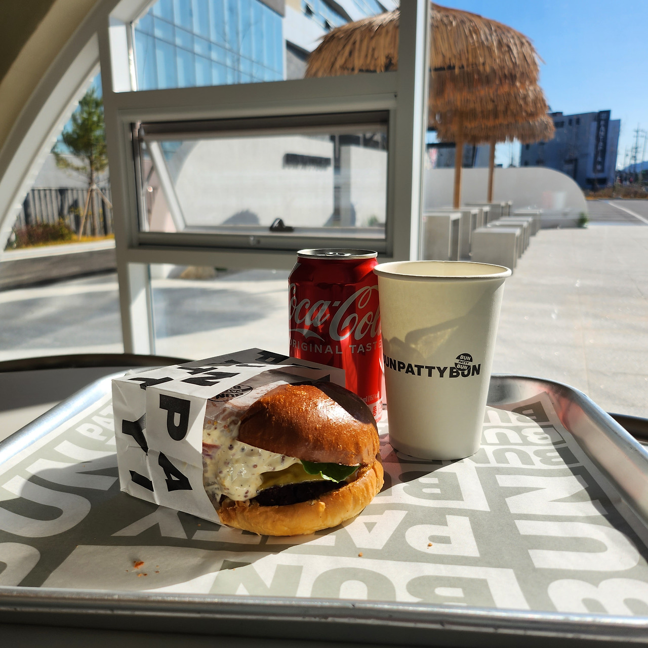 그렇다고 짐가방이 가벼워지는 것은 아니라 나는 금세 피곤해졌고 11시쯤 이미 배고파져 허기를 달랠 거리를 찾았지만 아직 문을 열지 않은 식당들 뿐이었다. 영업을 했다 하더라도 여행지의 식당들은 나 홀로 여행객에게 친절치 못하여 2인 이상 먹을 수 있는 음식들 뿐이라 어차피 내가 갈 수 있는 곳은 마땅치 않았다. 송정 해변을 벗어나 아파트들이 줄지은 도로로 나오니 새파란 하늘 아래 하얀 건물에 쓰인 번패티번이 보였다. 멀리서 보아도 햄버거 가게가 분명했다. 평소에는 잘 먹지 않지만, 1인분을 시킬 수 있으며 고칼로리를 제공하는 나 홀로 배낭 여행객에 어울리는 메뉴였다.