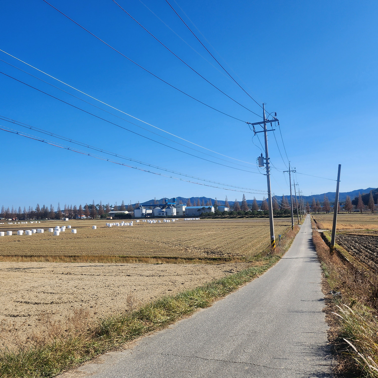 바닷가를 벗어나 마을을 가로질러 가는 길은 바닷길과는 다른 목가적인 풍경을 보여주었다. 금세 입안에서 아삭아삭 소리를 낼 듯 속이 가득 찬 배추들이 촘촘히 들어선 배추밭, 서울에선 보기 힘든 조금은 삐뚤게 줄 서 있는 전봇대들, 그리고 늦가을의 누런 논 위에 후드득 떨어진 하얀 마쉬맬로우는 햄버거 점심 후에 딱 어울리는 달콤한 간식처럼 보여 얼굴에 미소가 번졌다.
