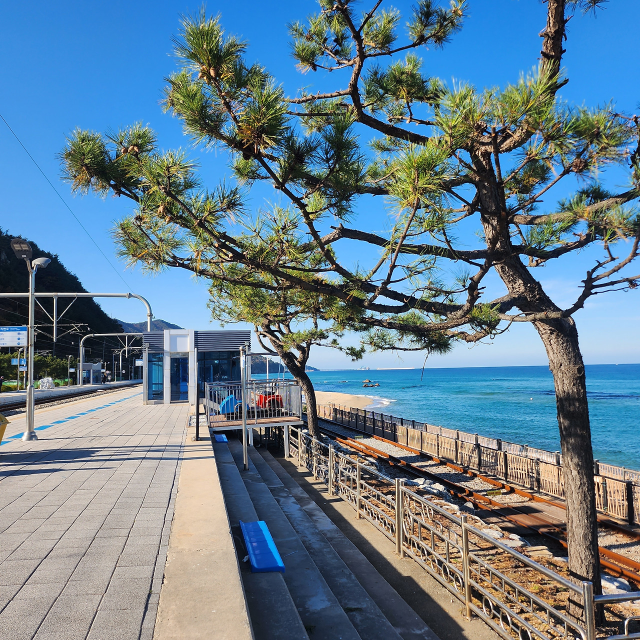 정동진 역은 겉보기에 작았지만 바로 앞에 해변이 있고 서울까지 한 번에 가는 열차가 있어서인지 평일인데도 역사는 사람들로 가득했다. 탁 트인 역에서 보이는 푸른 바다가 아니라 플랫폼과 들어오는 열차를 배경으로 사진을 찍는 외국인 커플이 있었다. 딱히 특별해 보이지 않는 풍경을 찍는 외국인 관광객을 보니, 해외여행 중 기차를 탈 때마다 역사, 플랫폼, 열차 안팎을 연달아 촬영했던 내가 기억났다. 낯선 장소에 존재하는 것들은 모두 특별해 보인다.