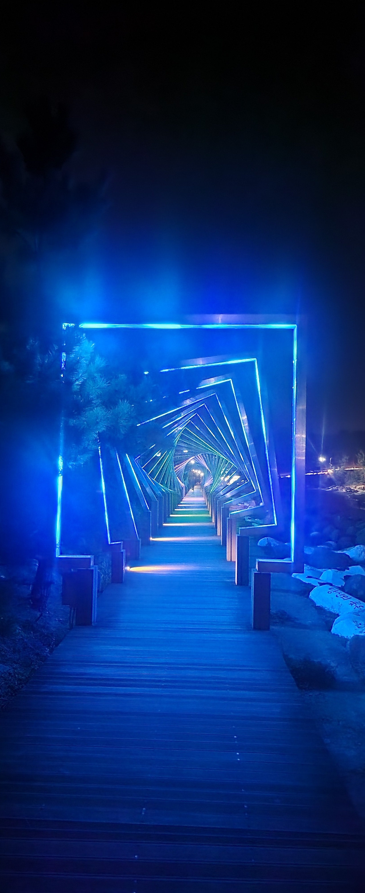 저녁 식사 후 산책하다가 발견한, 다른 차원으로 빨려 들어갈 것 같은 한섬 해변의 산책로.