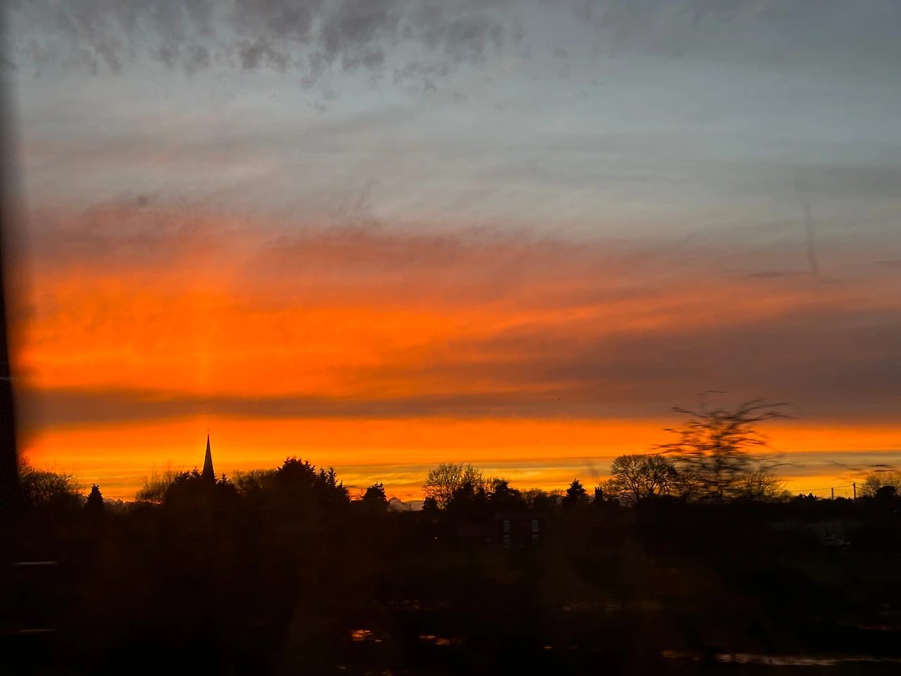 리즈에서 런던까지는 기차로 2시간 30분 남짓이 소요됐다. 수업이 마치고 출발하려니 너무 늦어서 아쉬웠는데, 덕분에 기차의 창문 너머로 꽤나 멋진 저녁노을을 즐겼다.