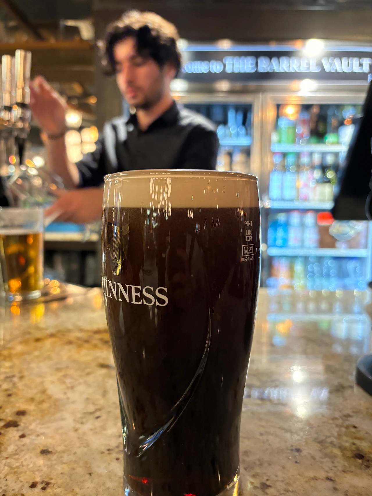뮤지컬을 보고 난 뒤에는 어김없이 펍에서 모였다. 난 흑맥주인 Guinness를 골랐다. 아일랜드 접경국이어서인지 유난히 맛이 좋았다