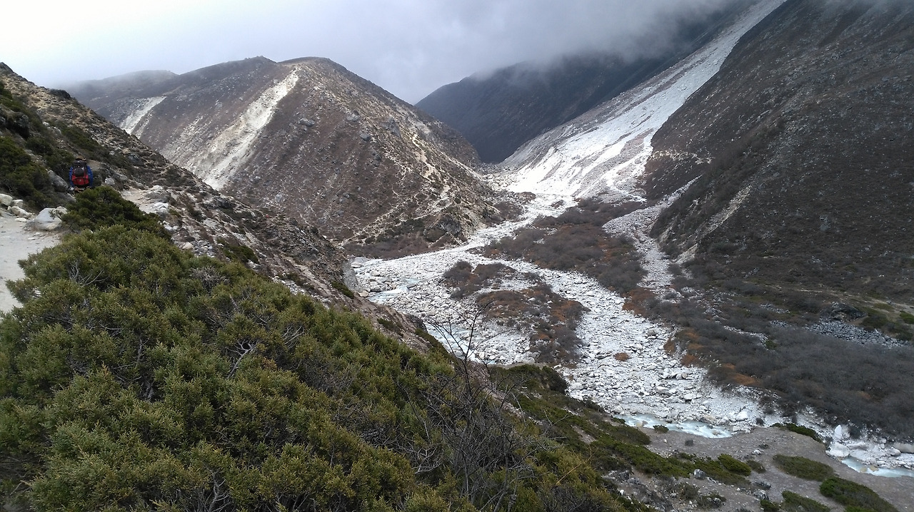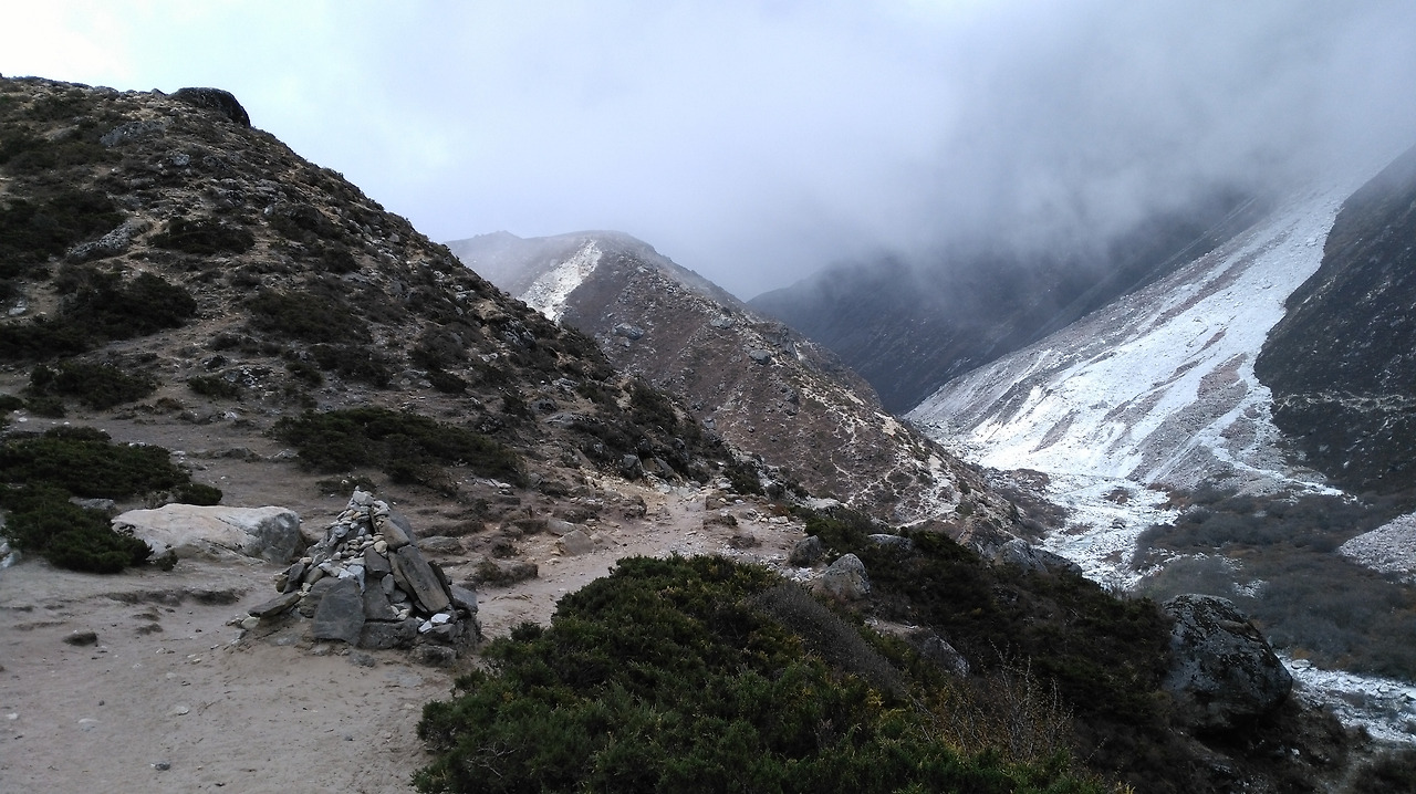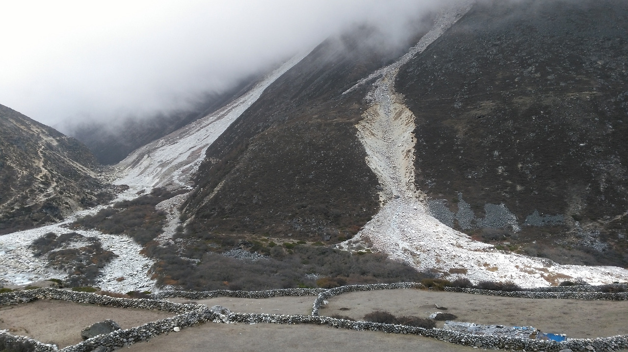 저기 보이는 흘러내린 듯 한 회색 얼룩들은 대지진의 상흔일 것이다. 지진으로 인해 ebc의 풍경도 많이 바뀌었고 트레킹 길 또한 달라졌다고 했다. 그렇지만 내가 본 네팔 사람들과 네팔은 이 상처들을 잘 이겨내고 있었다.