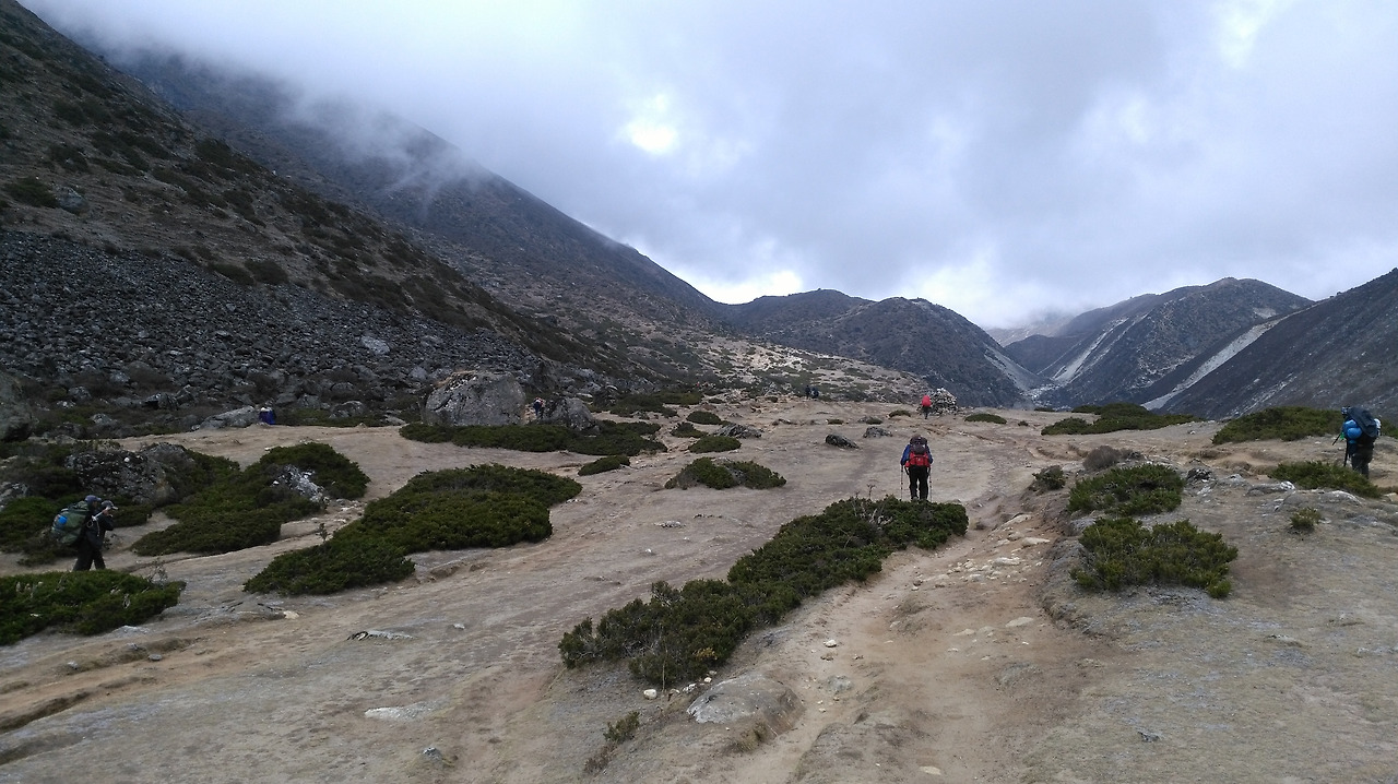 우리 팀의 포터들. 포터분들은 정말 경이롭다. 이 산소가 부족한 고산에서 무거운 짐들을 매고도 산을 훨훨 날아다니신다. 나는 한 시간도 버티지 못할 것 같은데 그 짐을 메고도 나보다 더 훨씬 올라가는 속도가 빠르다. 여기에서 활동하는 포터들은 산소 포화도 자체가 다르다는 이야기를 들었다.