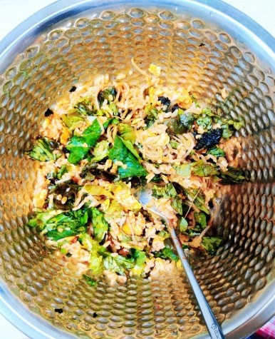 양푼에 따뜻한 흰쌀밥 퍼담고